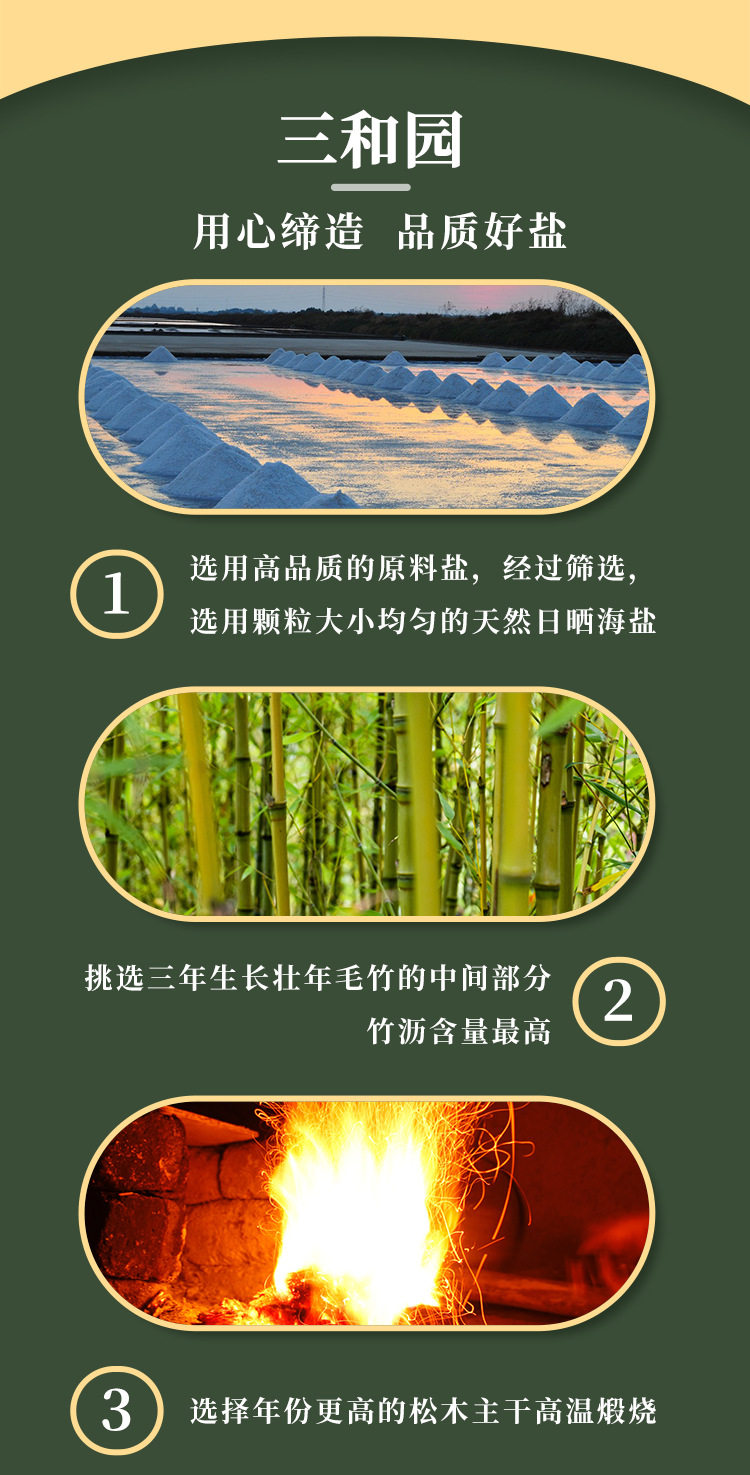 Sanheyuan Genuine Alkaline Non-Iodized Roasted Bamboo Salt Healthy Anti-Caking Agent-Free Iodine-Free Seasoning Salt Edible Salt
