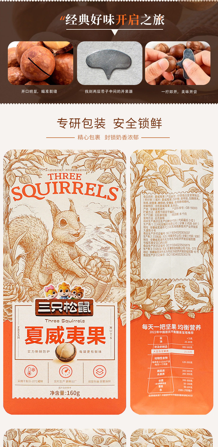 [Three Squirrels_Hawaiian Macadamia Nuts 160g] Dried Fruit Snacks Nuts Wholesale Creamy Flavor Bagged Crispy