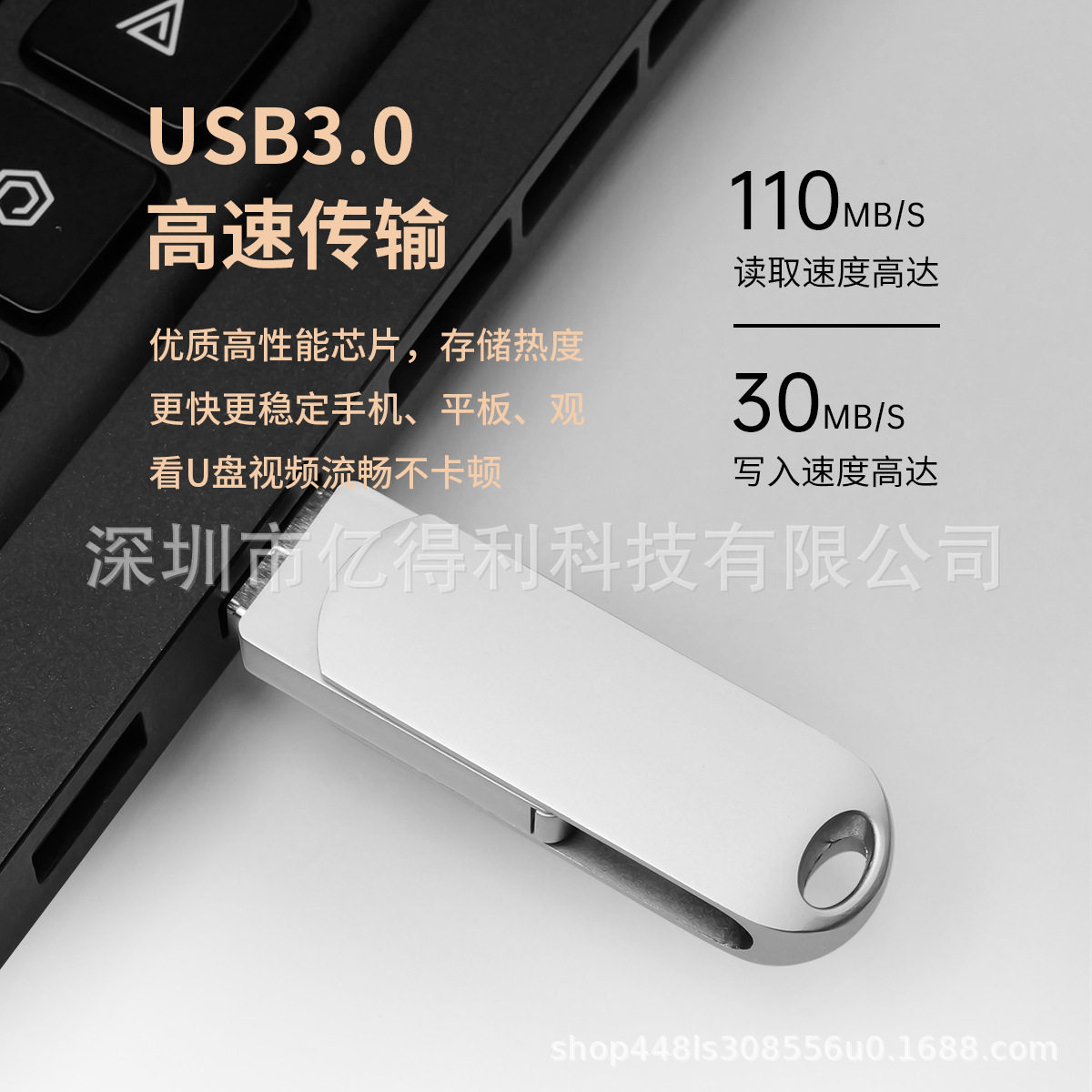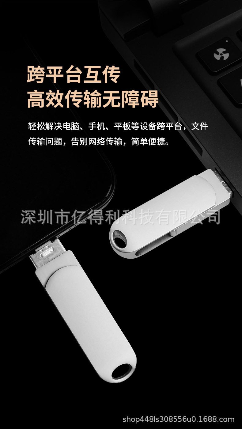 Specialized Apple Phone USB Flash Drive with Metal Rotating Design, Supports Laser Logo Engraving and Data Transfer, 1Tb Full Capacity Rotating USB Flash Drive