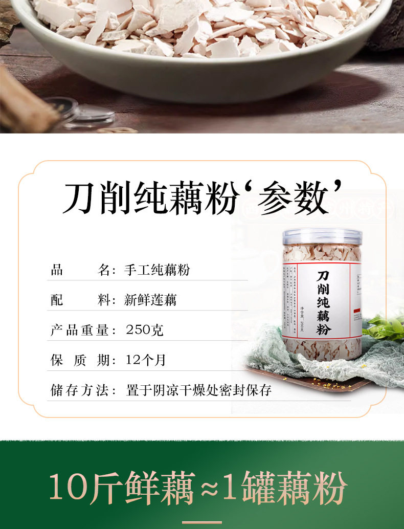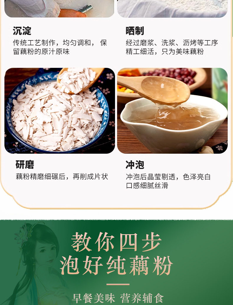 Handmade knife cut pure lotus root starch 250g canned healthy sugar-free instant instant instant instant meal original flavor Honghu lotus root starch