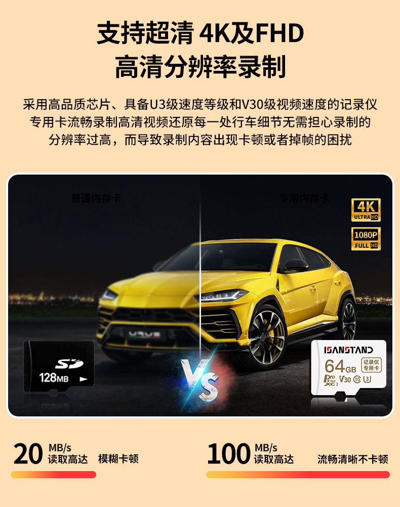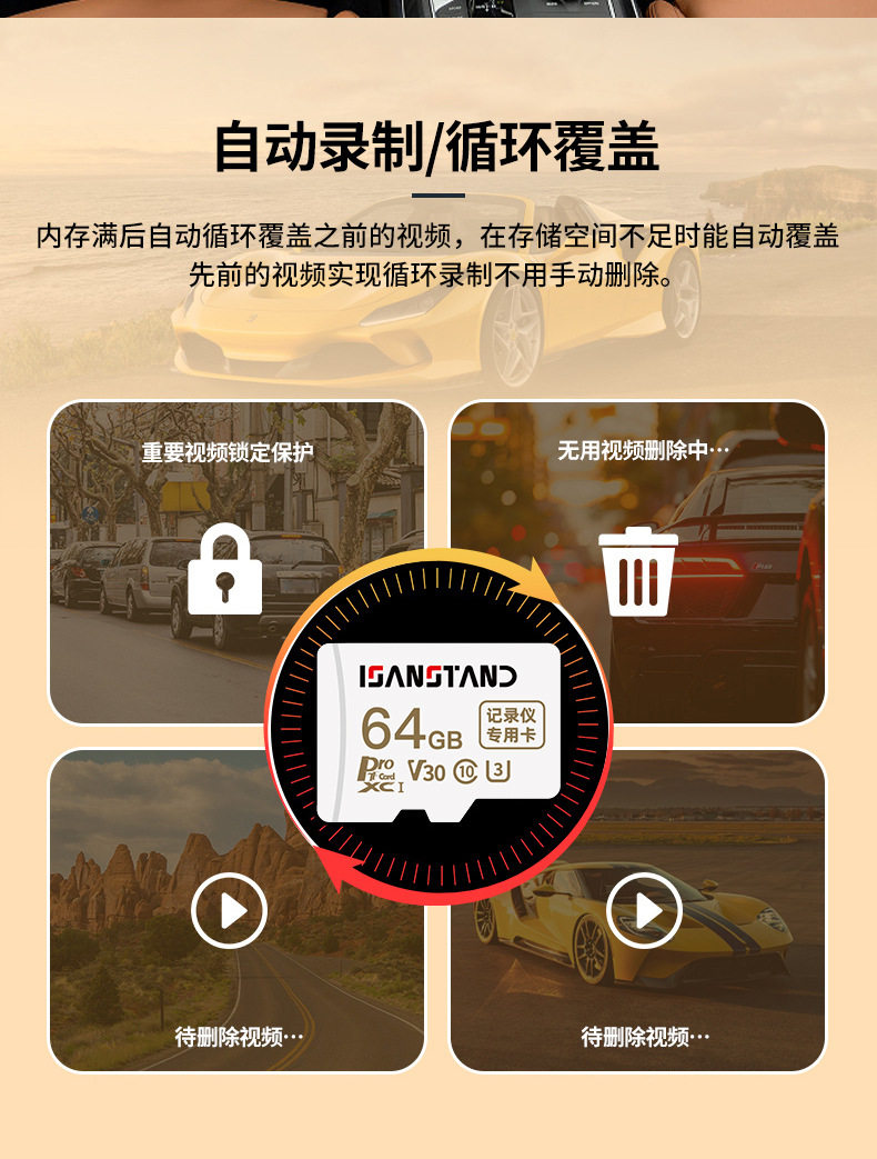 Sanlipai Tf Card Panoramic Driving Recorder Special Memory Card High-Speed U3 Car Memory Card Sd Card Memory Card