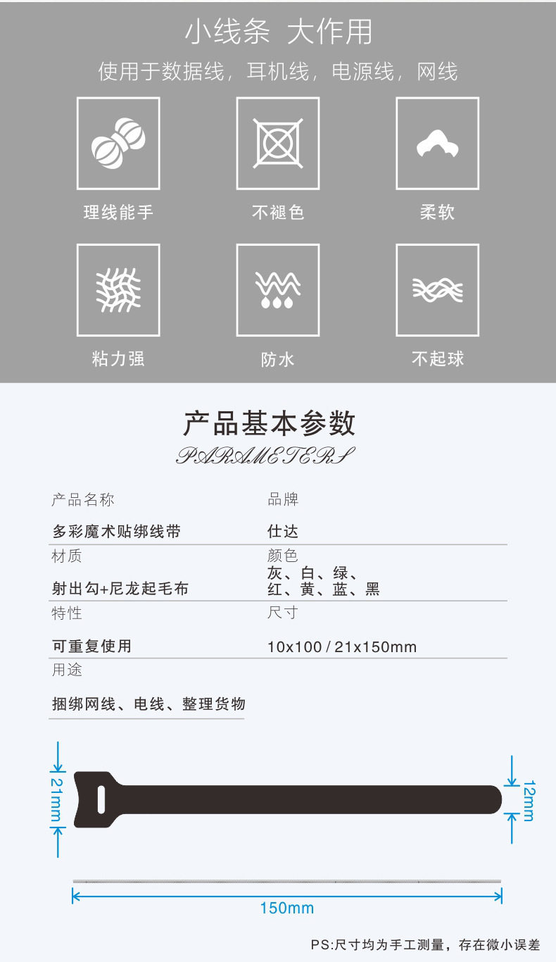 | Scope of application | Earphone,Toy,Cable management tape,Bundle,Computer wires,Clean up the wires |