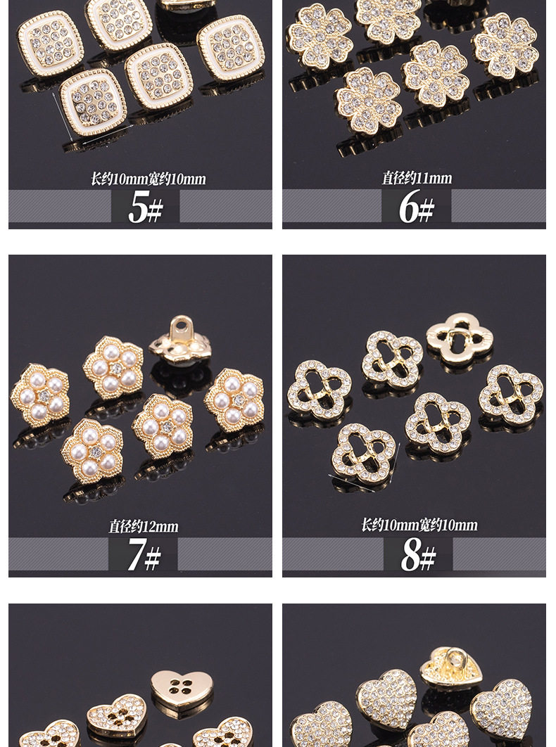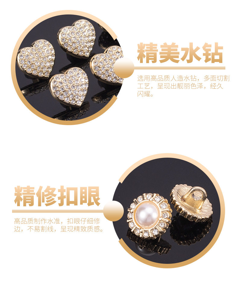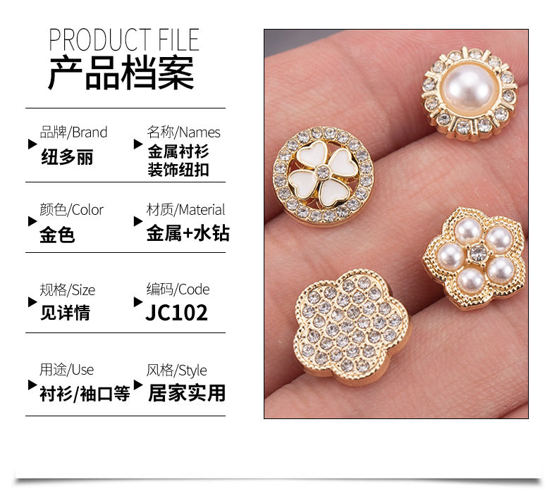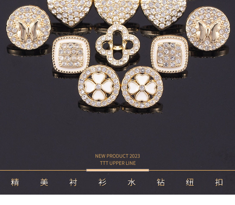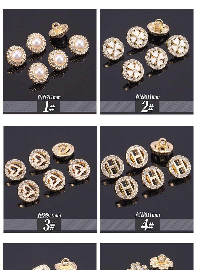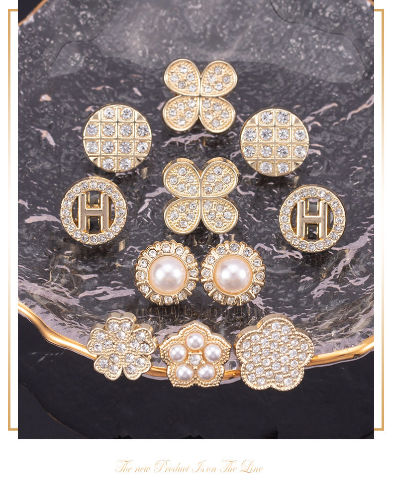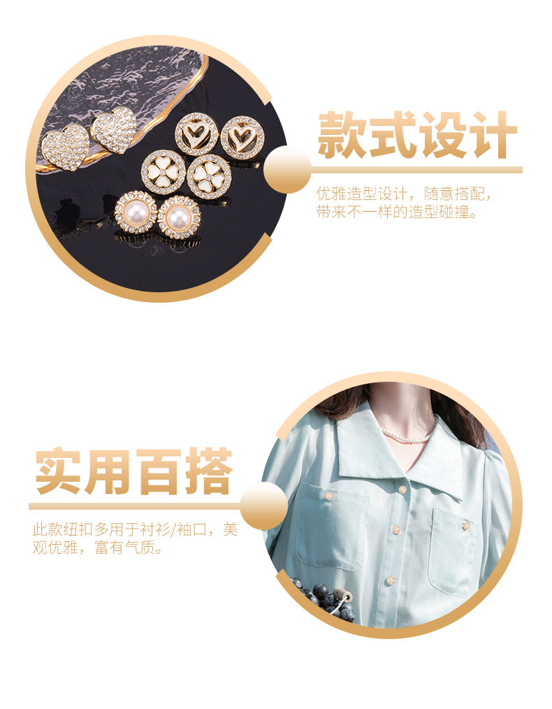 Chanel Style High-end Shirt Metal Button Clothes High-end Fine Small Button Women's Top Round Pearl Diamond Buckle