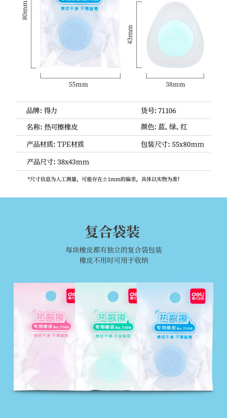 Deli 71106_thermal eraser Erasable Gel Pen special eraser creative simple eraser