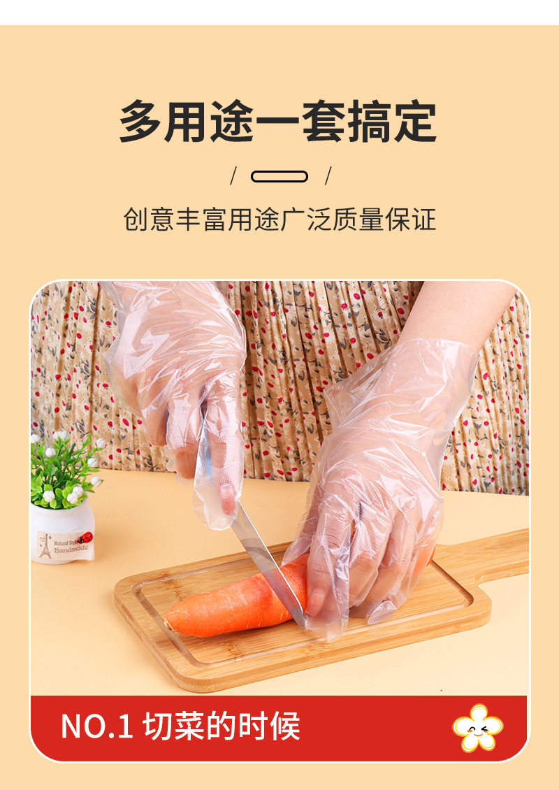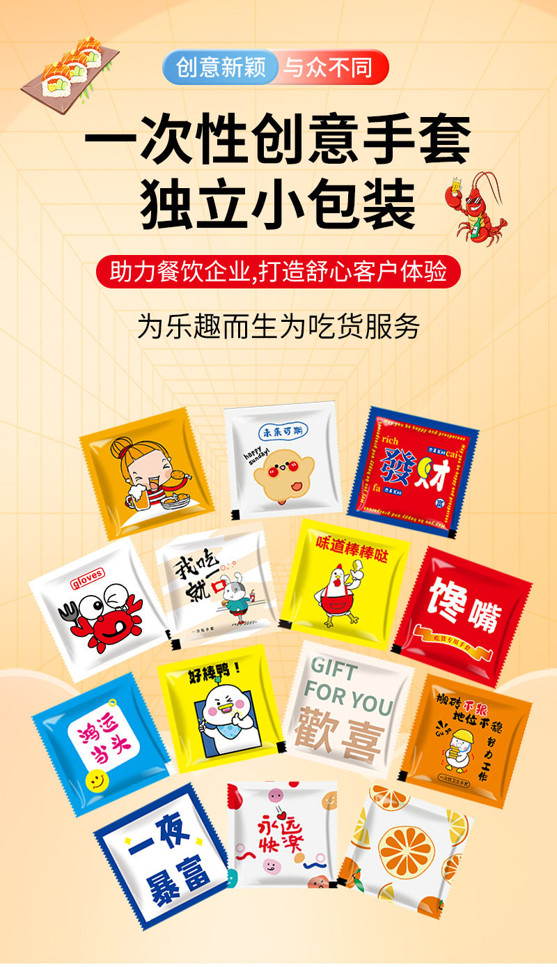 Disposable gloves individually packaged thickened pe lobster takeaway fried chicken catering PE transparent gloves can be printed logo