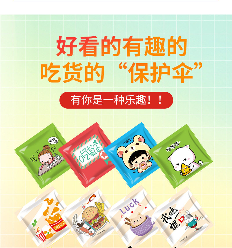 | Color | Square random mix and match (200 small bags),Square 2-pack transparent (200 sachets),Square 4-pack (150 small bags),Rectangular 2-pack transparent (200 small bags),Red foodie series (200 sachets),Mushroom head series (200 sachets),Day-day rich (200 sachets),Come on china (200 small packets),Happy (200 sachets),Happy rice (200 sachets),Hamburger fried chicken (200 sachets),Crab series (200 sachets),Red crayfish series (200 sachets),Playful duck series (200 sachets),Green pizza series (200 sachets),Little yellow chicken (200 packets),Four-color lobster (200 sachets),Hi beer bbq (200 sachets),Ok duck (200 sachets),Good luck (200 small packs),Red envelope series (200 small bags),Bixin (200 small bags),Big chicken and italian style (200 small bags),Colorful foodies (200 small bags),Big smiling face (200 sachets),White and orange foodies (200 small bags),Non-long meat style (200 small bags),Good learning (200 packets),Add oil to dry (200 packets),Good reviews (200 small bags),Simple style (200 small bags),Dried meals for workers (200 packets),A lot of money (200 sachets),Peace and joy (200 packets),Good luck and good fortune (200 small packets),Cute chicken series (200 sachets),Pink pizza series (200 sachets) |