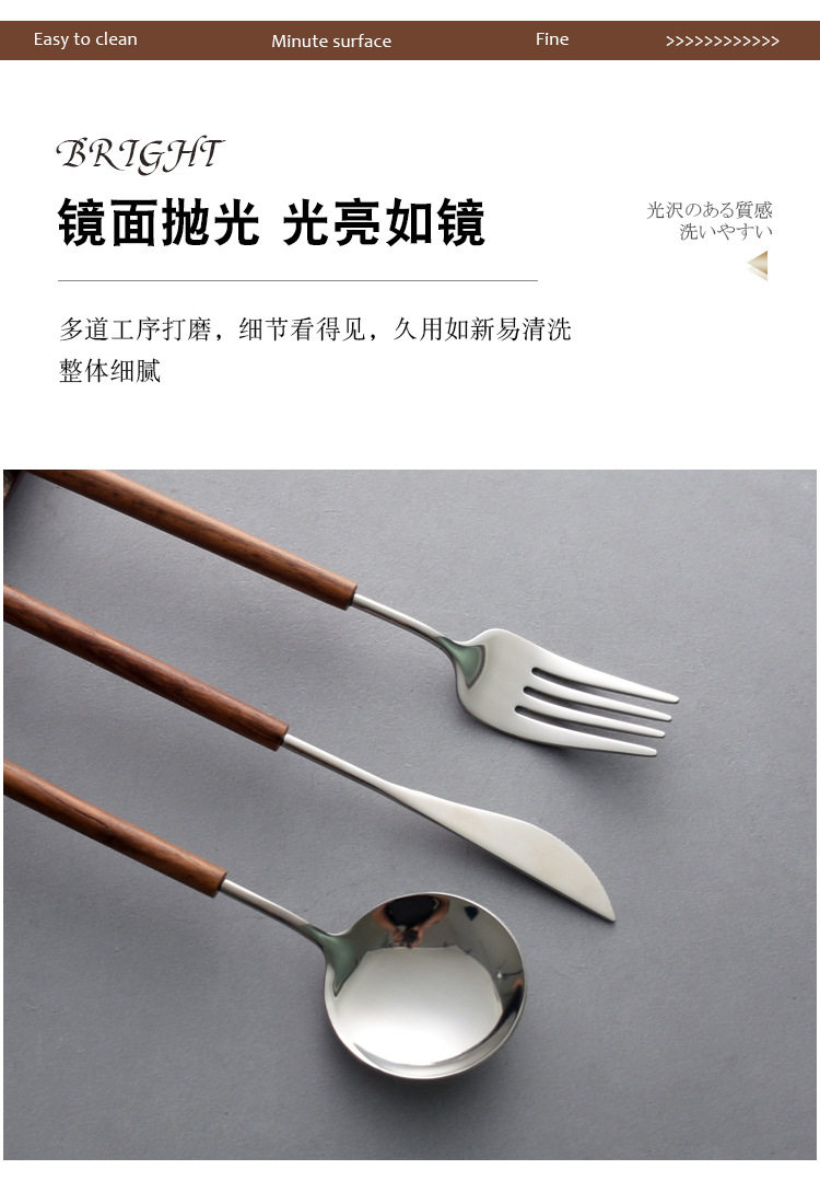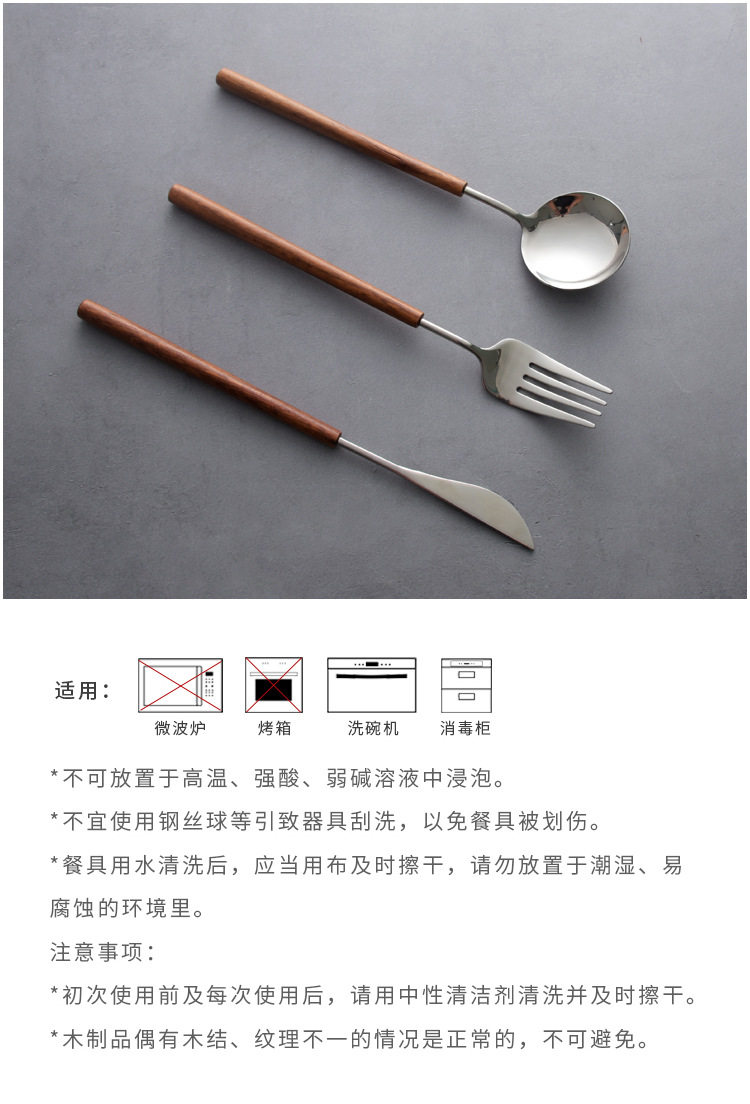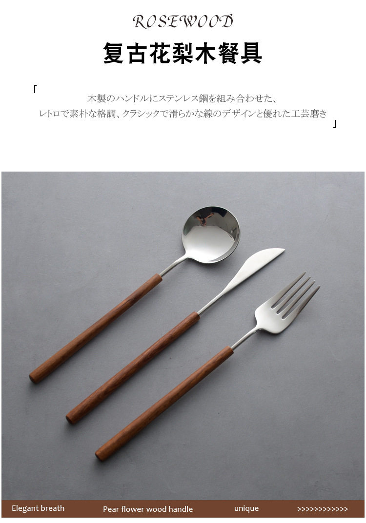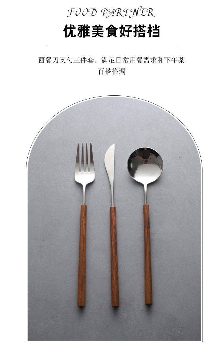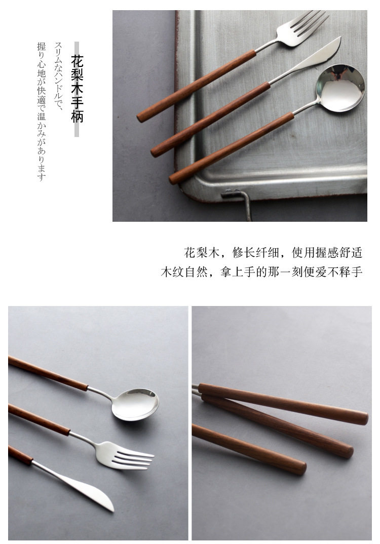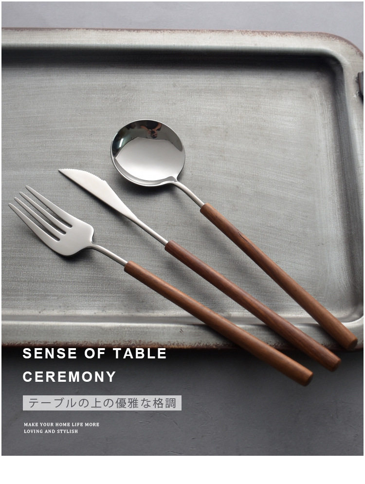 Japanese-style pear wooden handle western tableware knife, fork and spoon three-piece set 304 stainless steel household spoon fork
