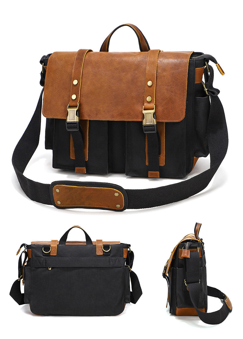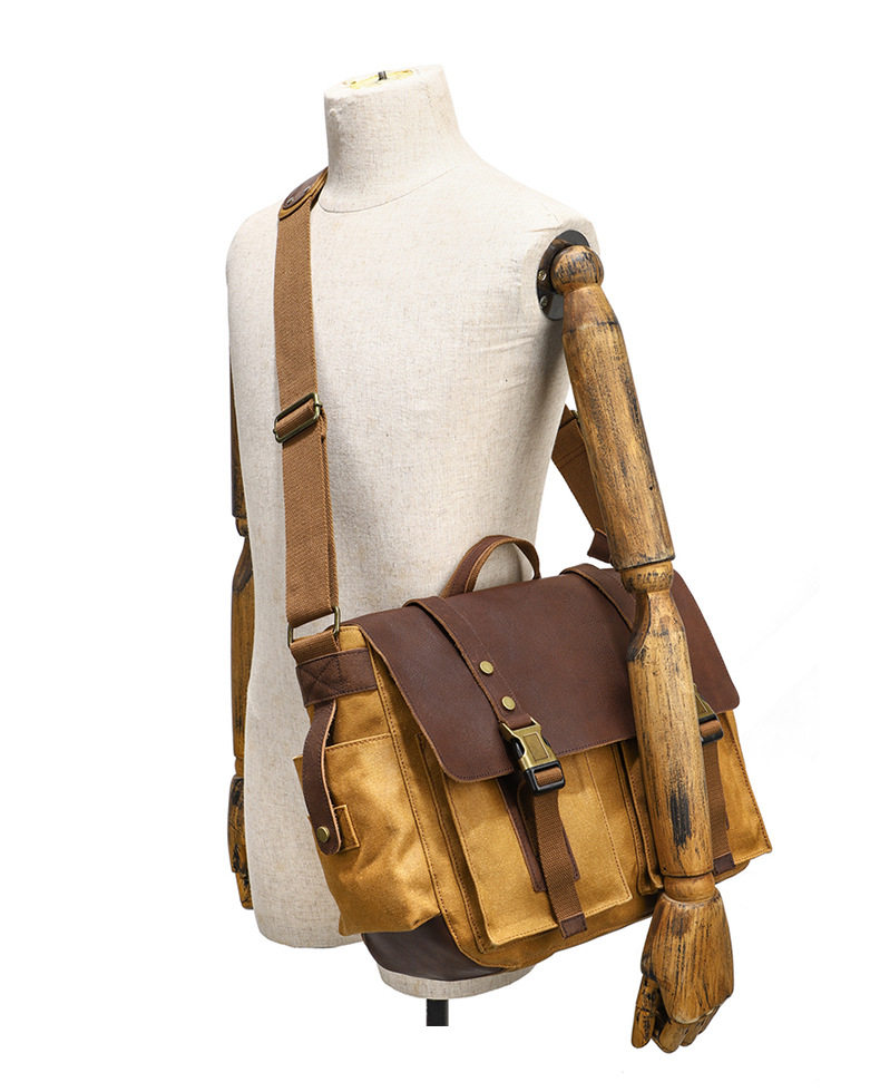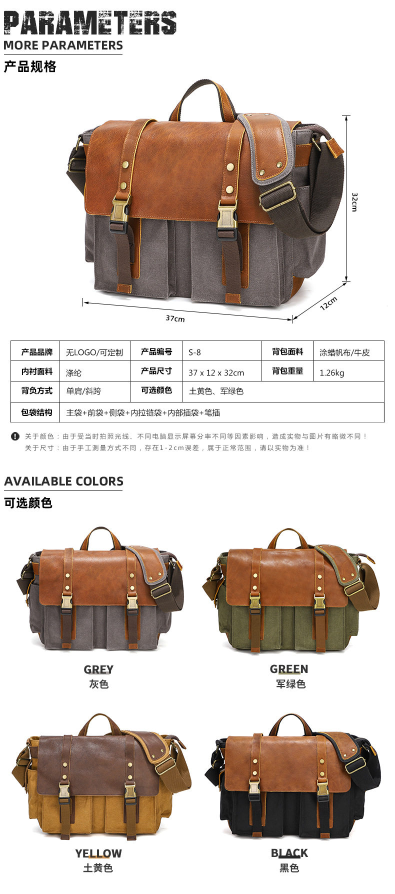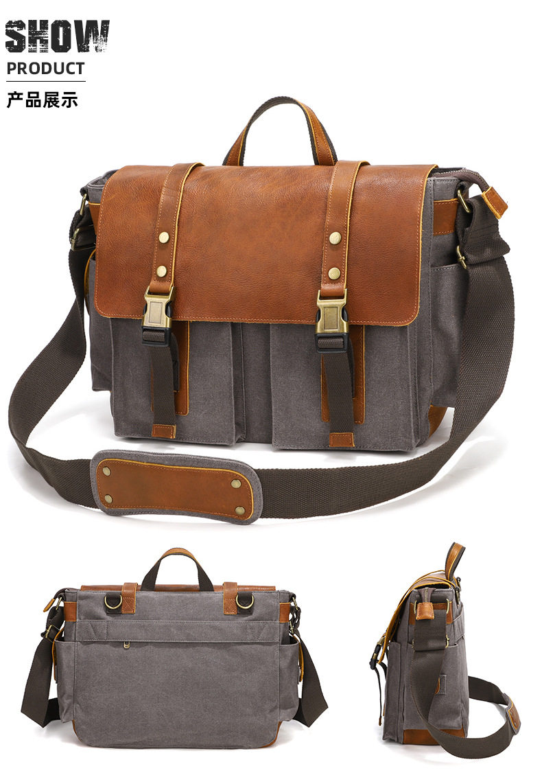 Cross-border Retro Men's Shoulder Bag Oil Wax Canvas with Top Layer Cowhide Crossbody Bag Casual Shoulder Crossbody Bag