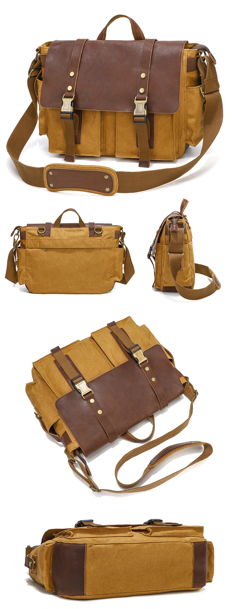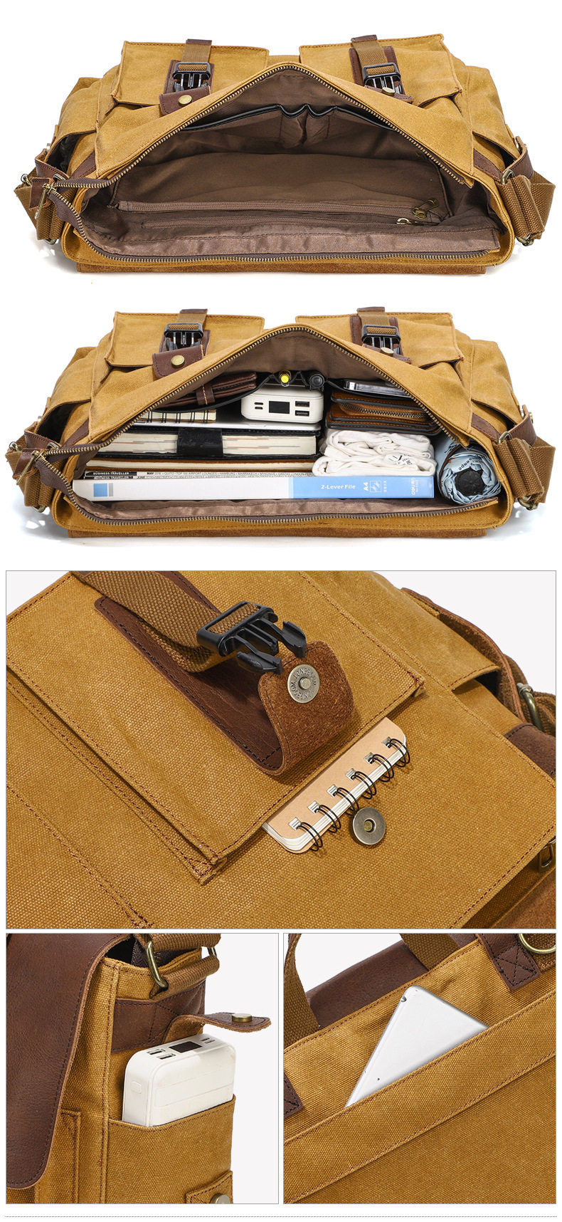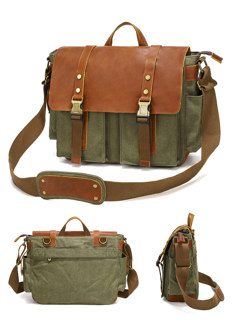 Cross-border Retro Men's Shoulder Bag Oil Wax Canvas with Top Layer Cowhide Crossbody Bag Casual Shoulder Crossbody Bag