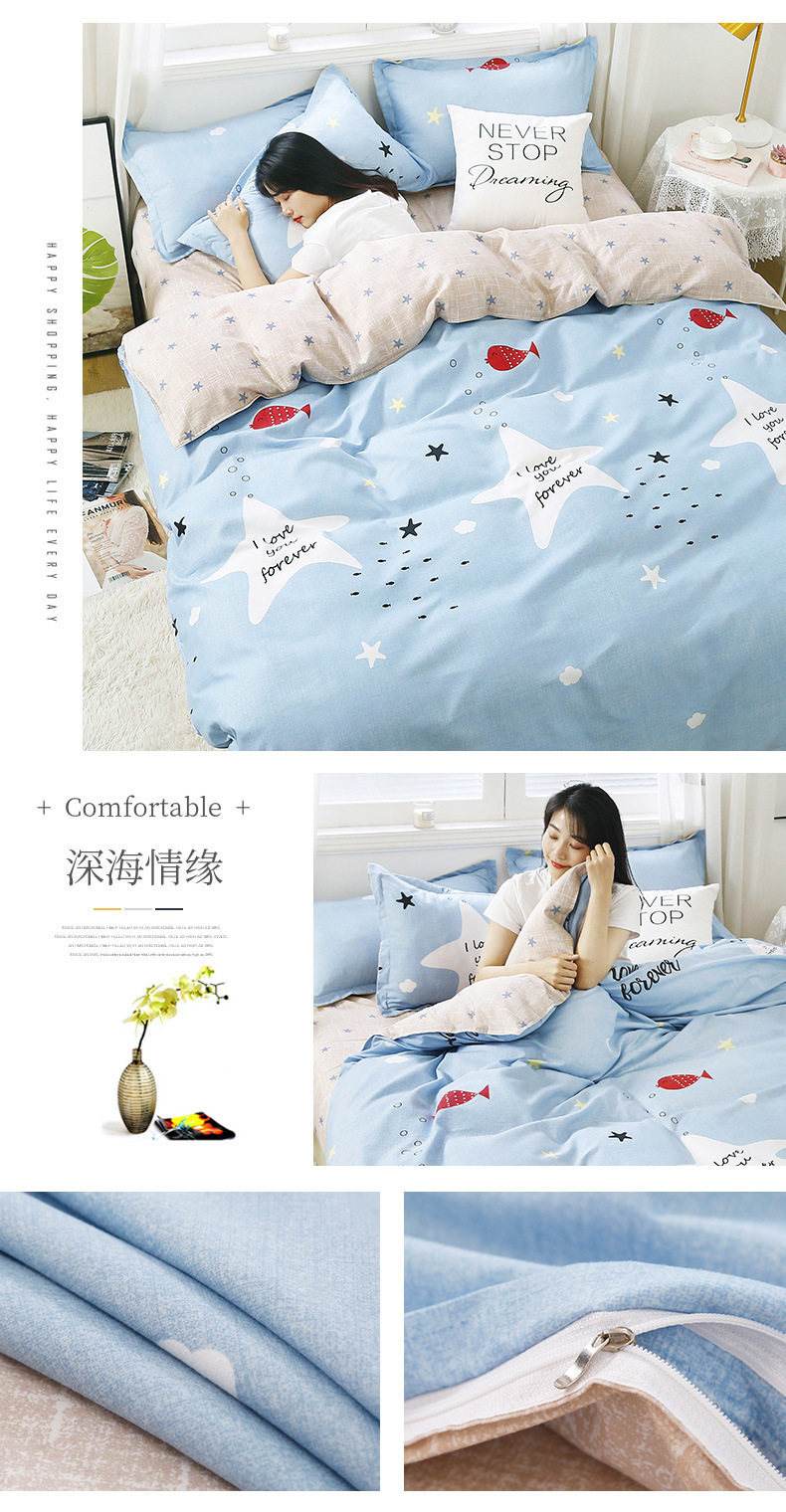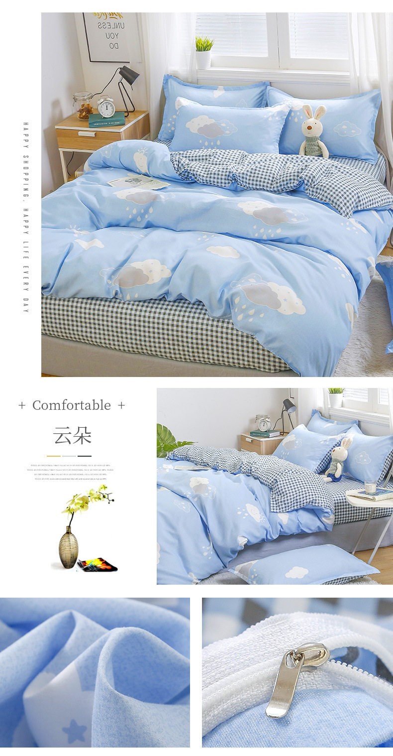 Factory wholesale four-piece bedding set four seasons student dormitory bed sheet quilt cover three-piece brushed quilt cover