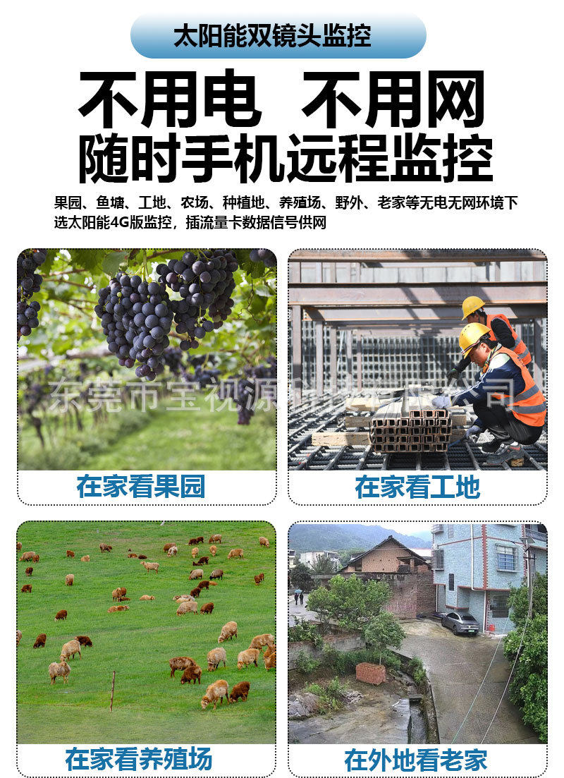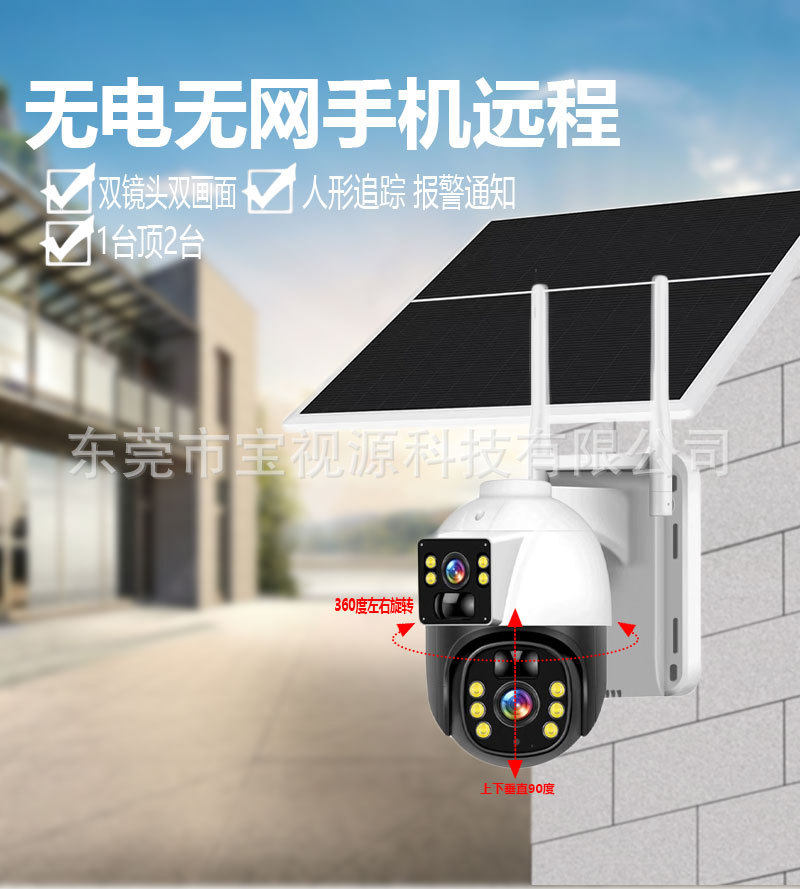 Outdoor solar surveillance camera night vision HD home wireless remote mobile phone monitor dual lens monitoring