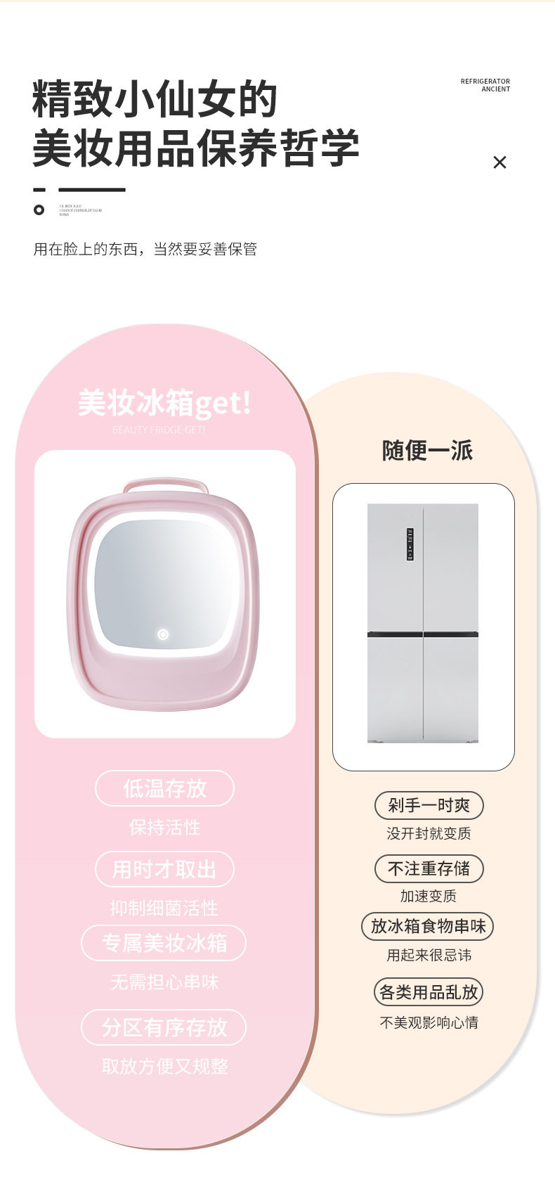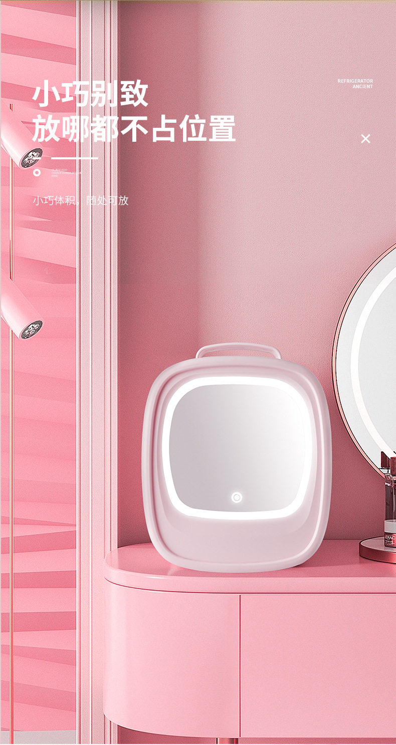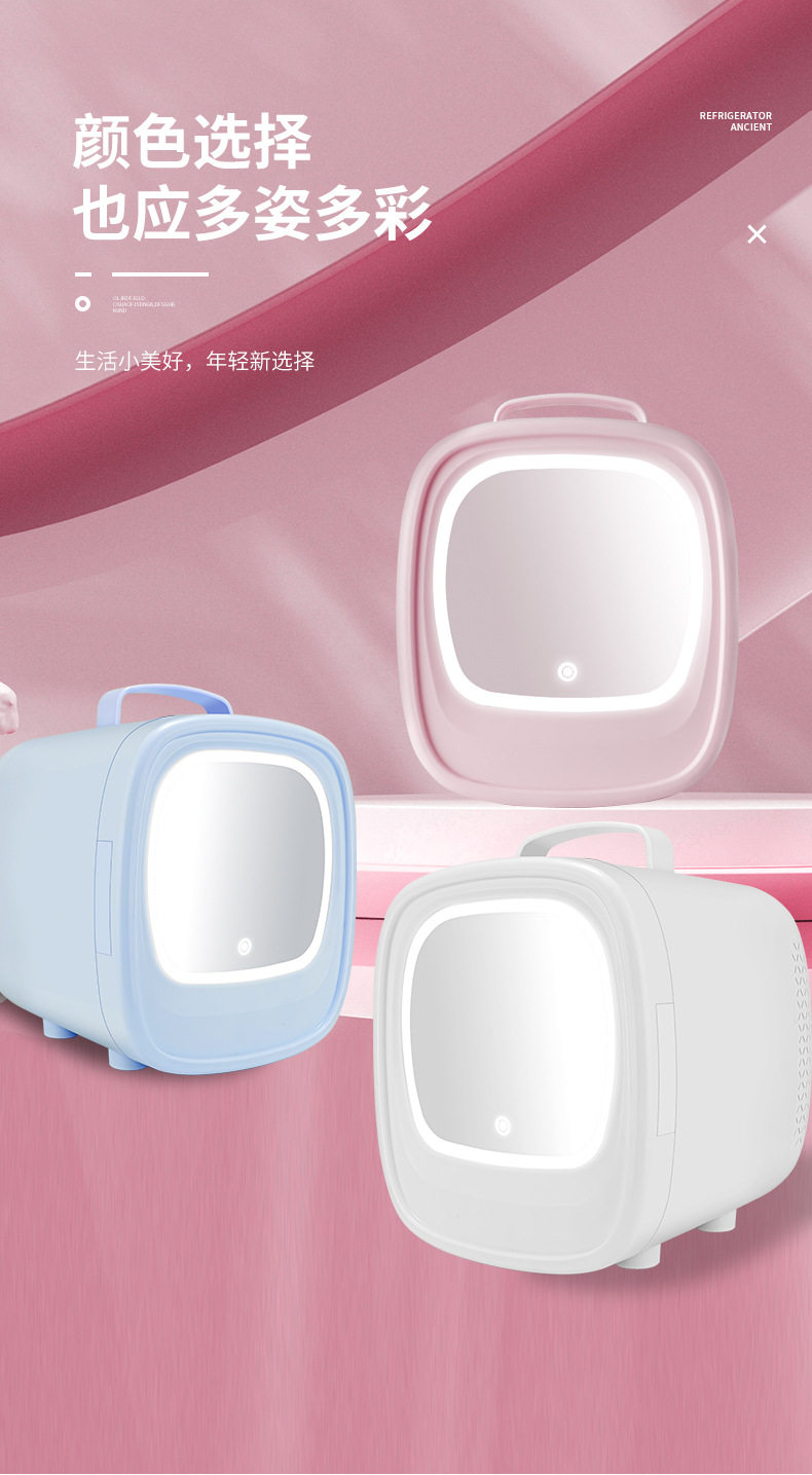 Car refrigerator multi-function LED lamp mirror 6L storage mask cosmetics beauty makeup mini refrigerator