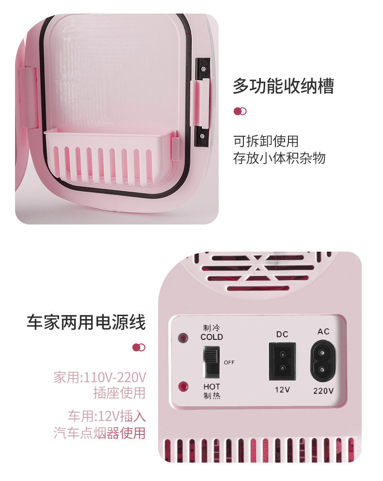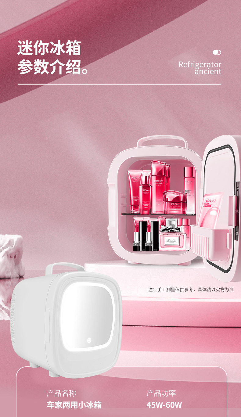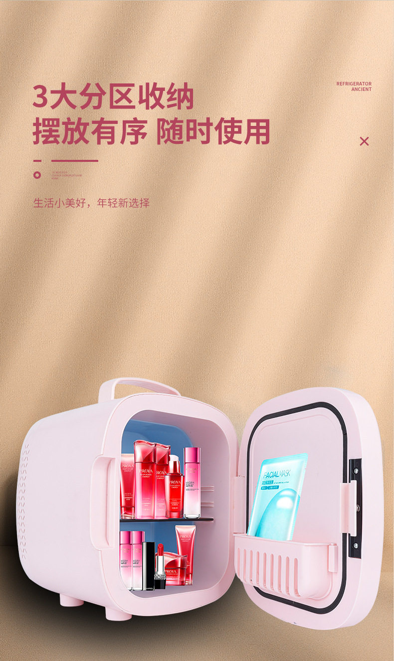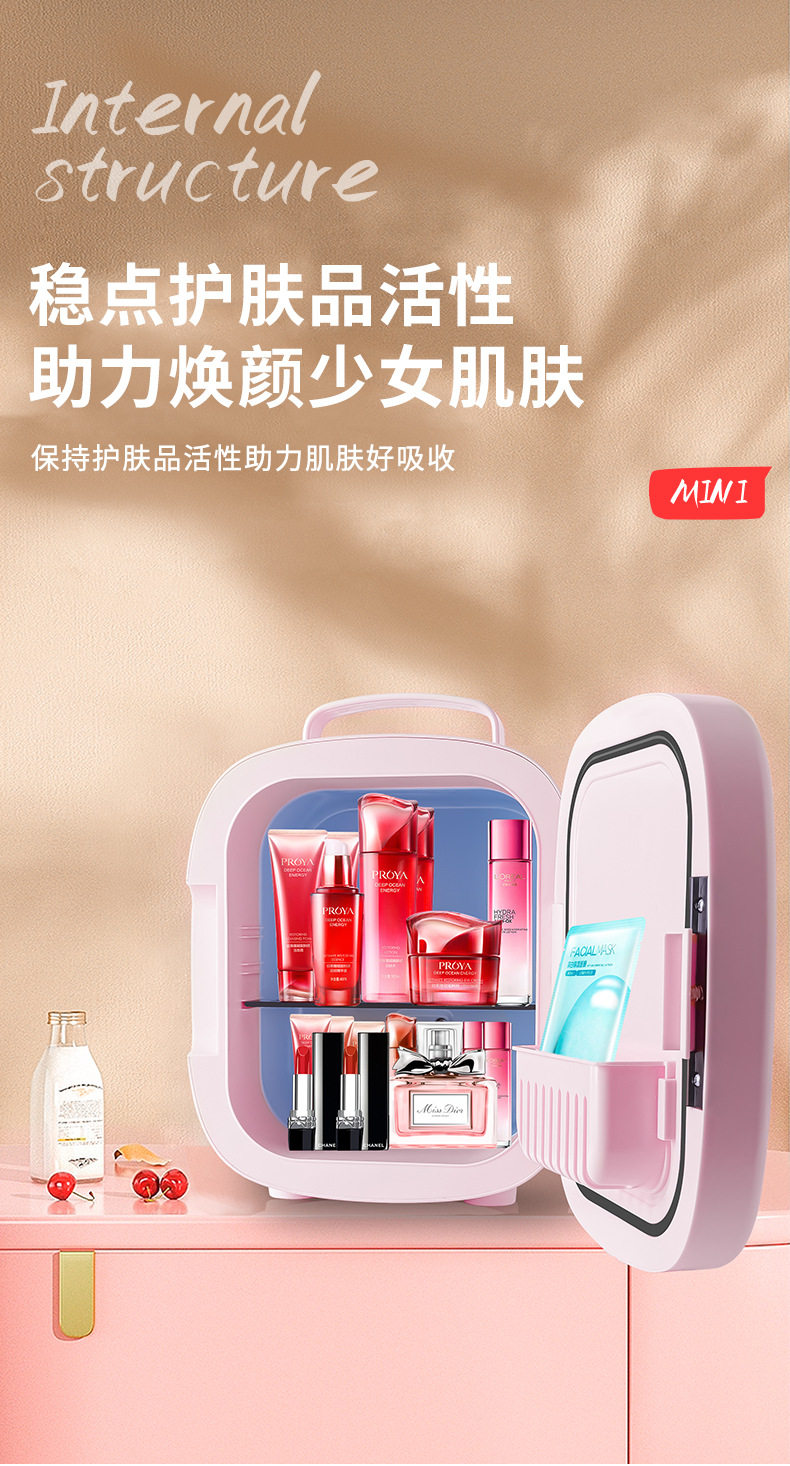 Car refrigerator multi-function LED lamp mirror 6L storage mask cosmetics beauty makeup mini refrigerator