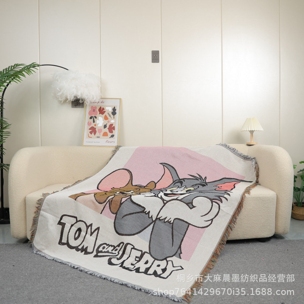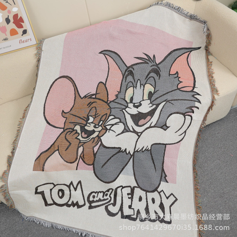 Cartoon Cat and Mouse Blanket Multifunctional Sofa Cover Towel Camping Blanket Trunk Decorative Blanket Cover Blanket
