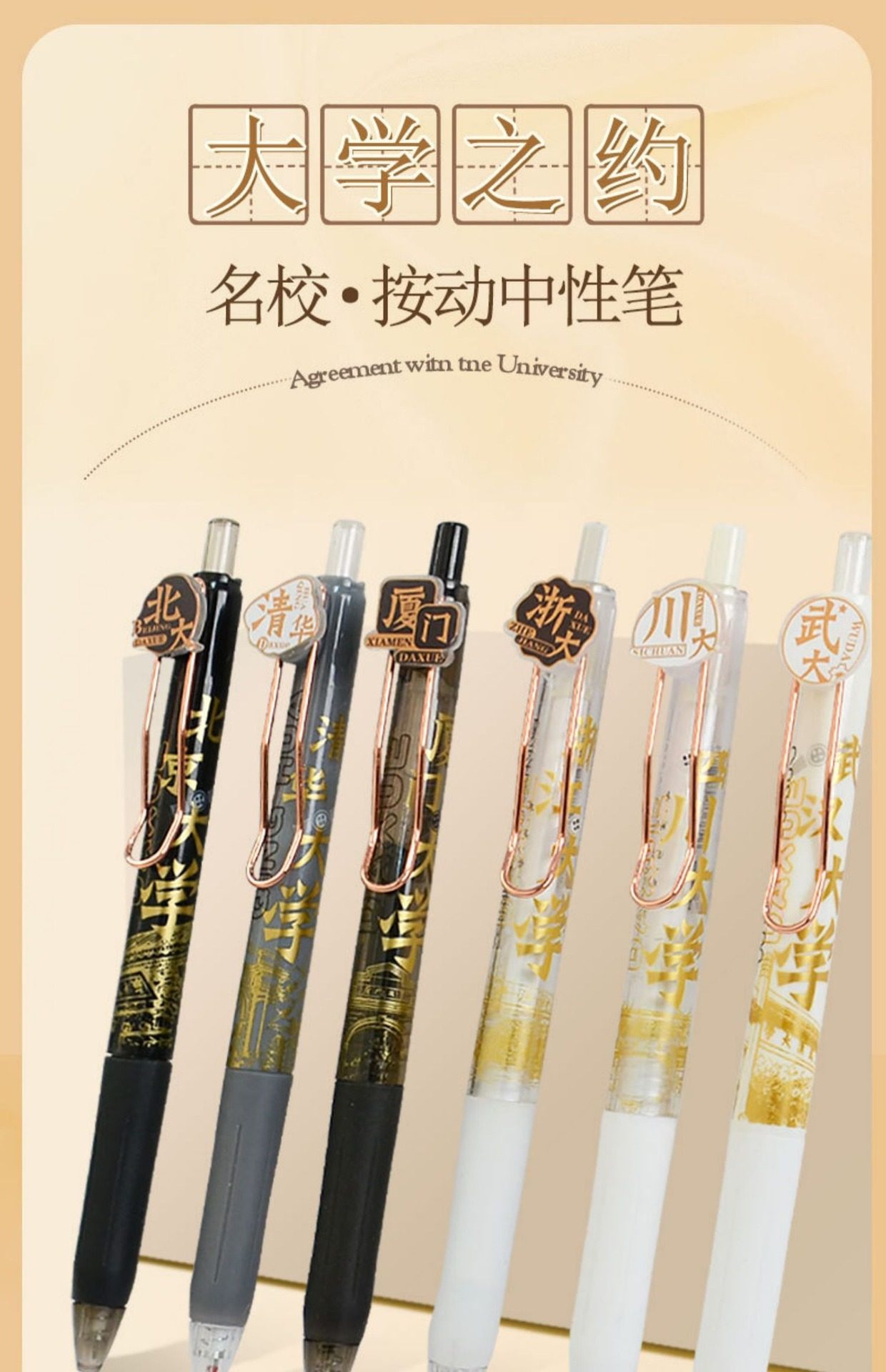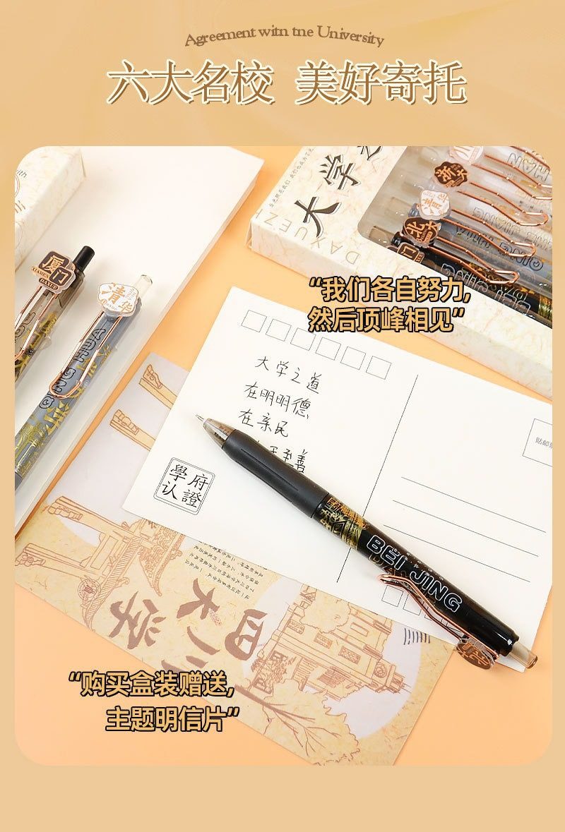 University Appointment Gel Pen High-Looking Famous School Press Pen Student Exam Brush Pen Quick-Drying Learning Stationery Gift