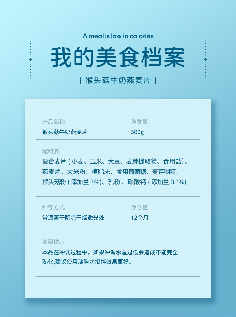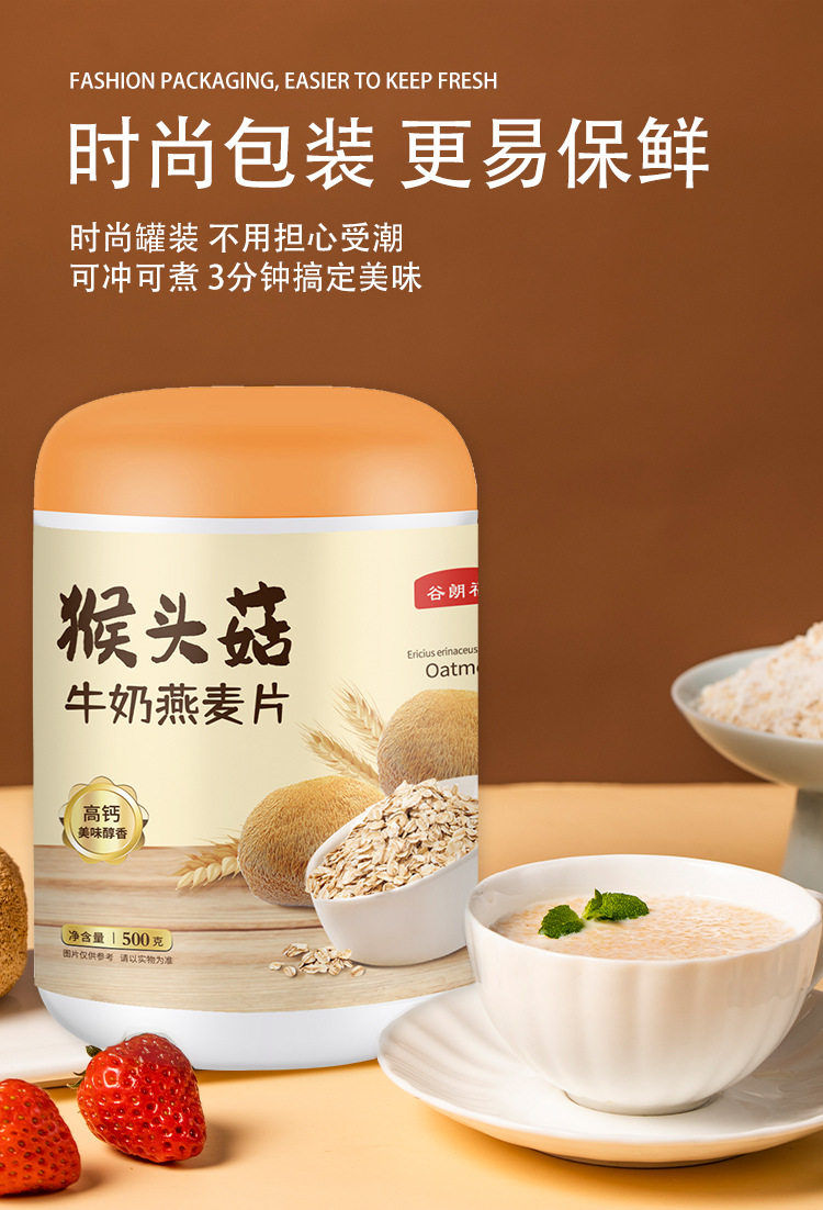 Hericium Milk Oatmeal 500g Full Meal Replacement Cereal with Milky Flavor Breakfast Instant Oatmeal