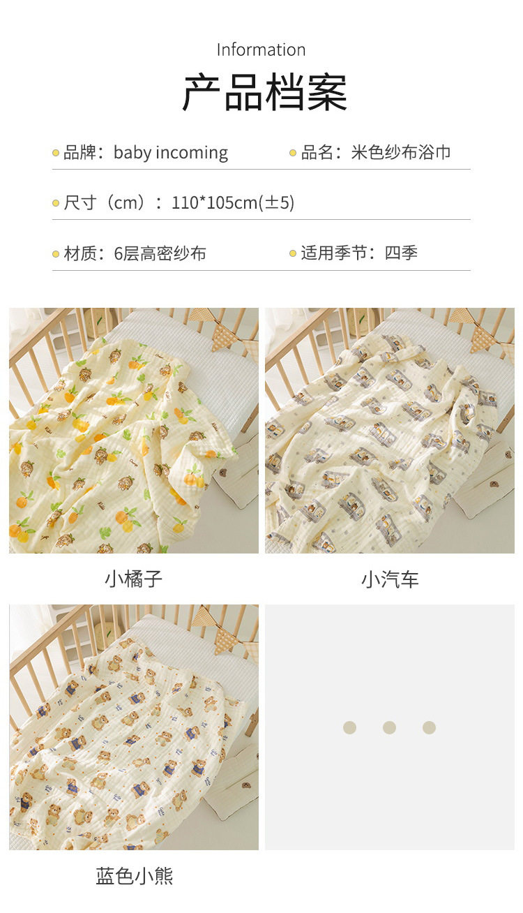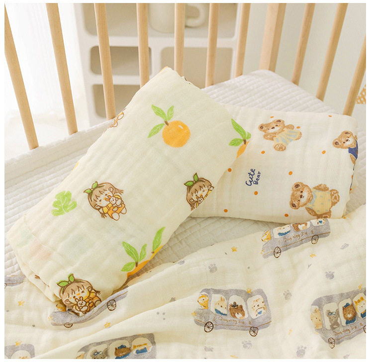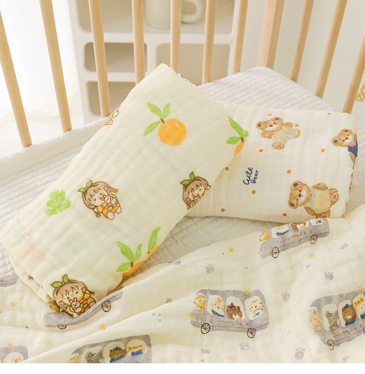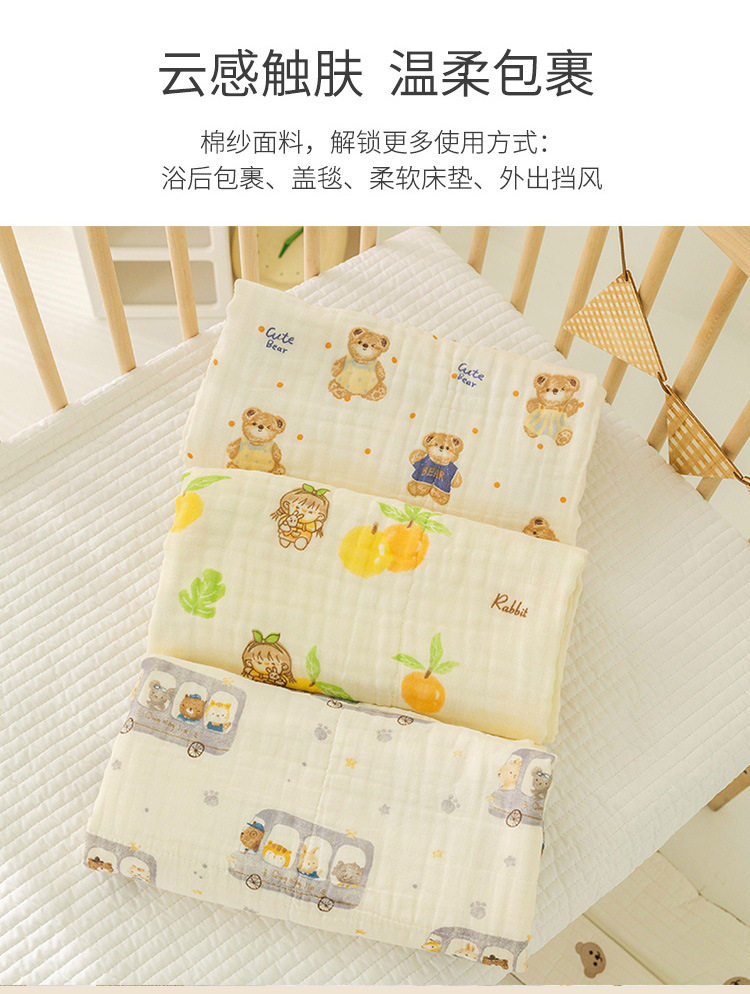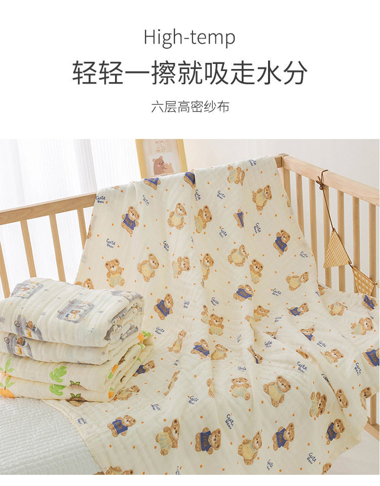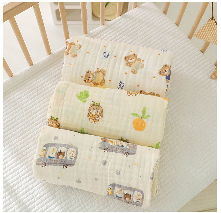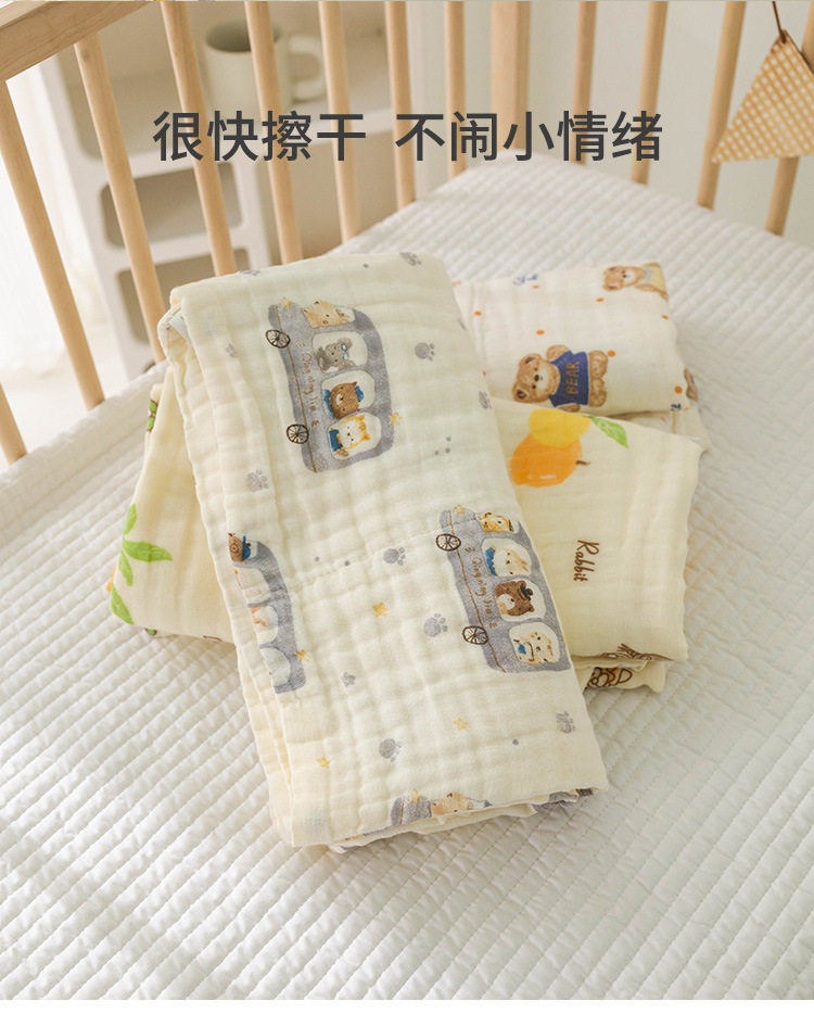 Baby Gauze Bath Towel Class A Newborn Soft Absorbent Printed Children's Bag Six-Layer Baby's Cuddle Children's Squirt