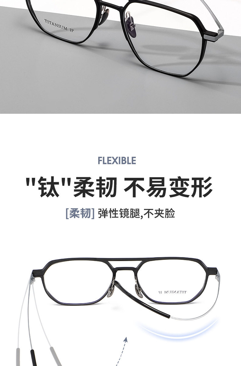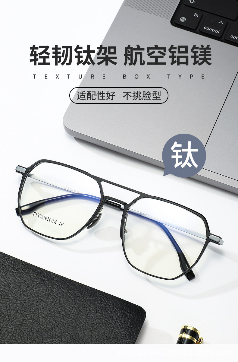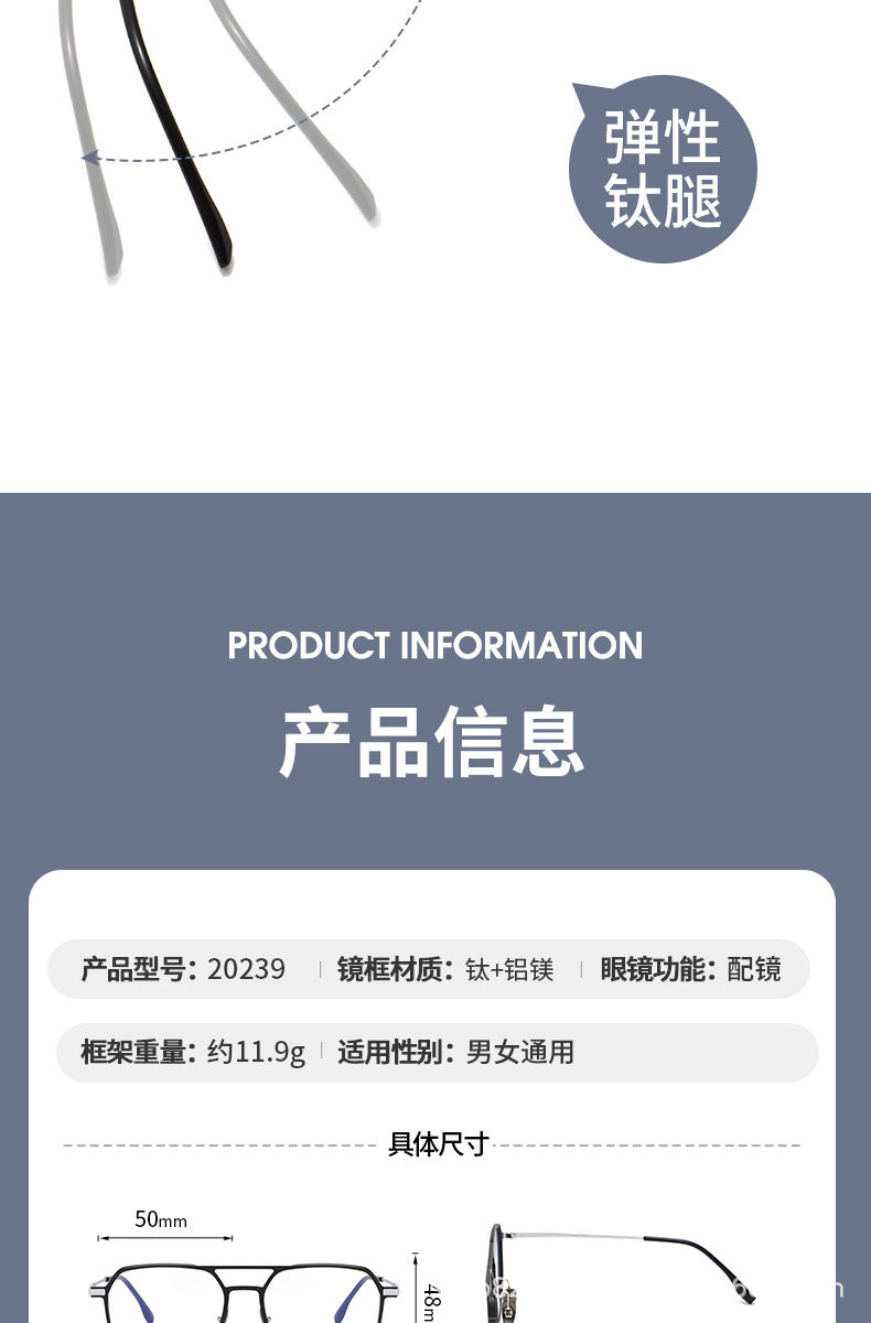 20239 Aluminum-Magnesium Glasses Double-Bridge Eyeglass Frame for Men with Titanium Temples, Suitable for Large Faces, Finished Frame Can Be Customized with Prescription and Blue Light Protection