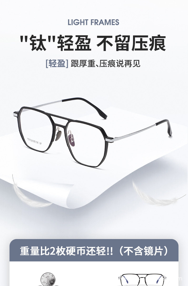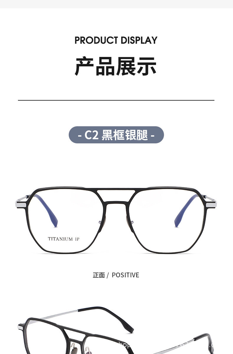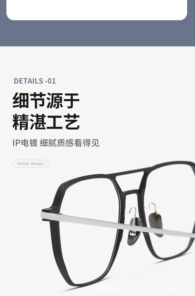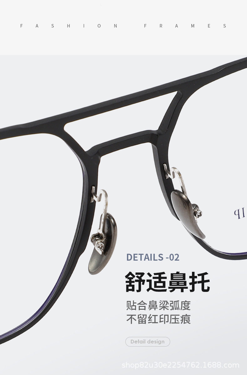 20239 Aluminum-Magnesium Glasses Double-Bridge Eyeglass Frame for Men with Titanium Temples, Suitable for Large Faces, Finished Frame Can Be Customized with Prescription and Blue Light Protection