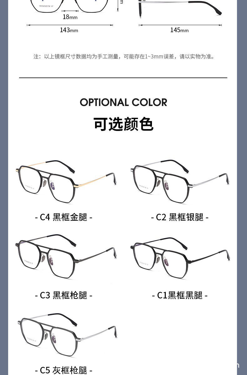 | Frame color | C1 black frame black legs,C2 black frame silver legs,C3 black frame gun legs,C4 black frame gold legs,C5 gray frame gun legs,0-degree gray/tan lenses cost 15 yuan,Contact customer service for prescription lenses |