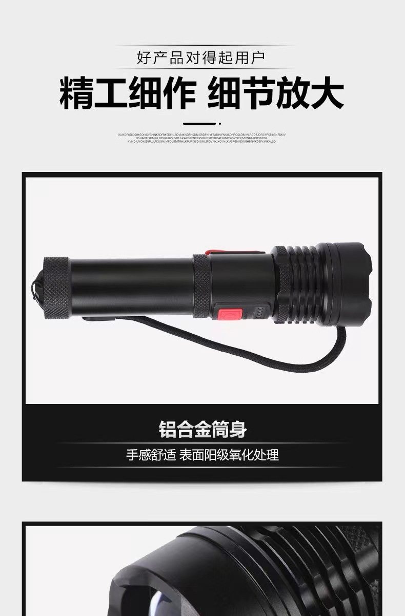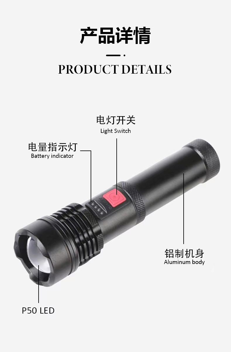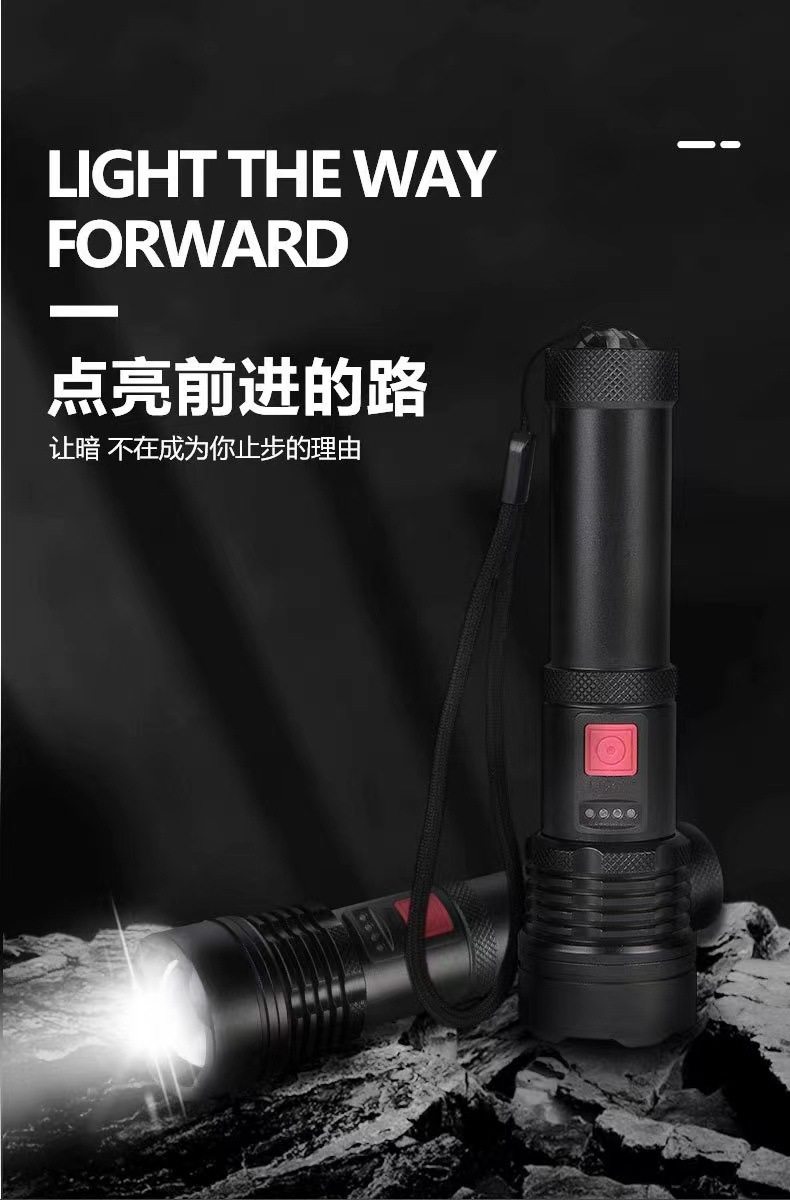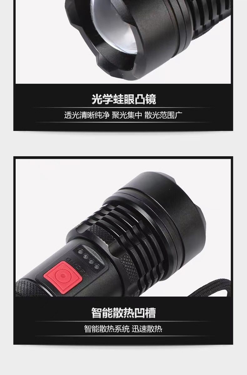 P50 bright flashlight super bright zoom long-range built-in USB charging portable outdoor riding lamp hand grip flashlight