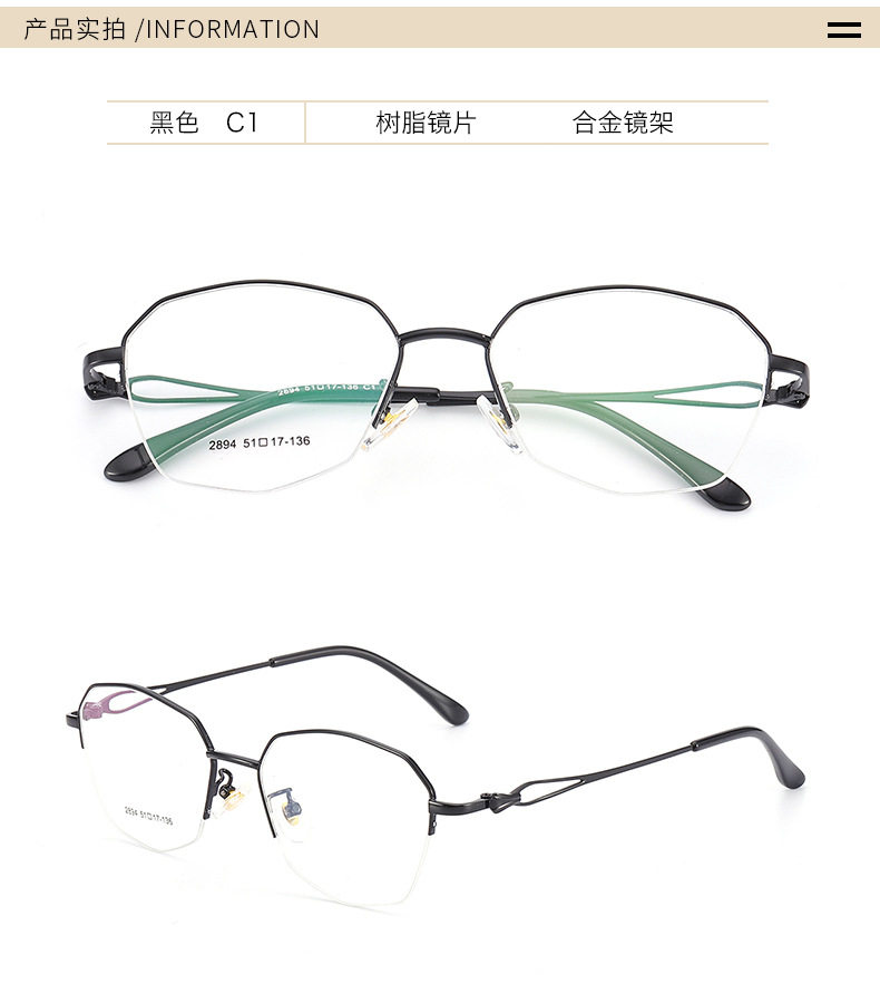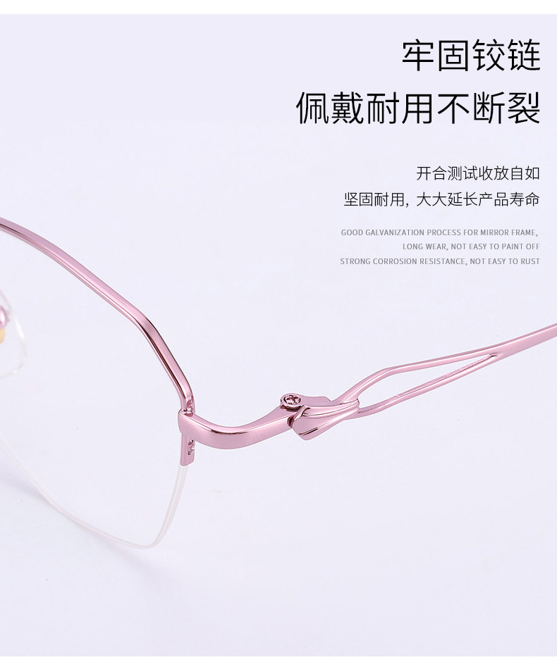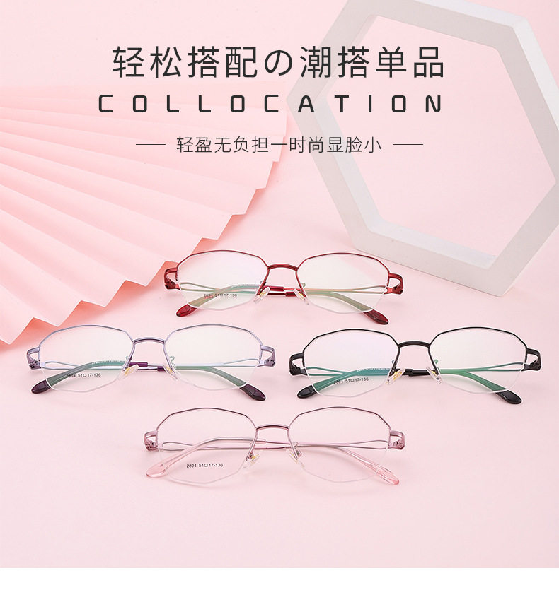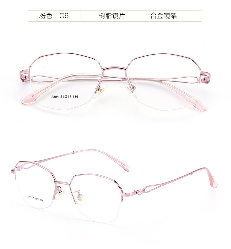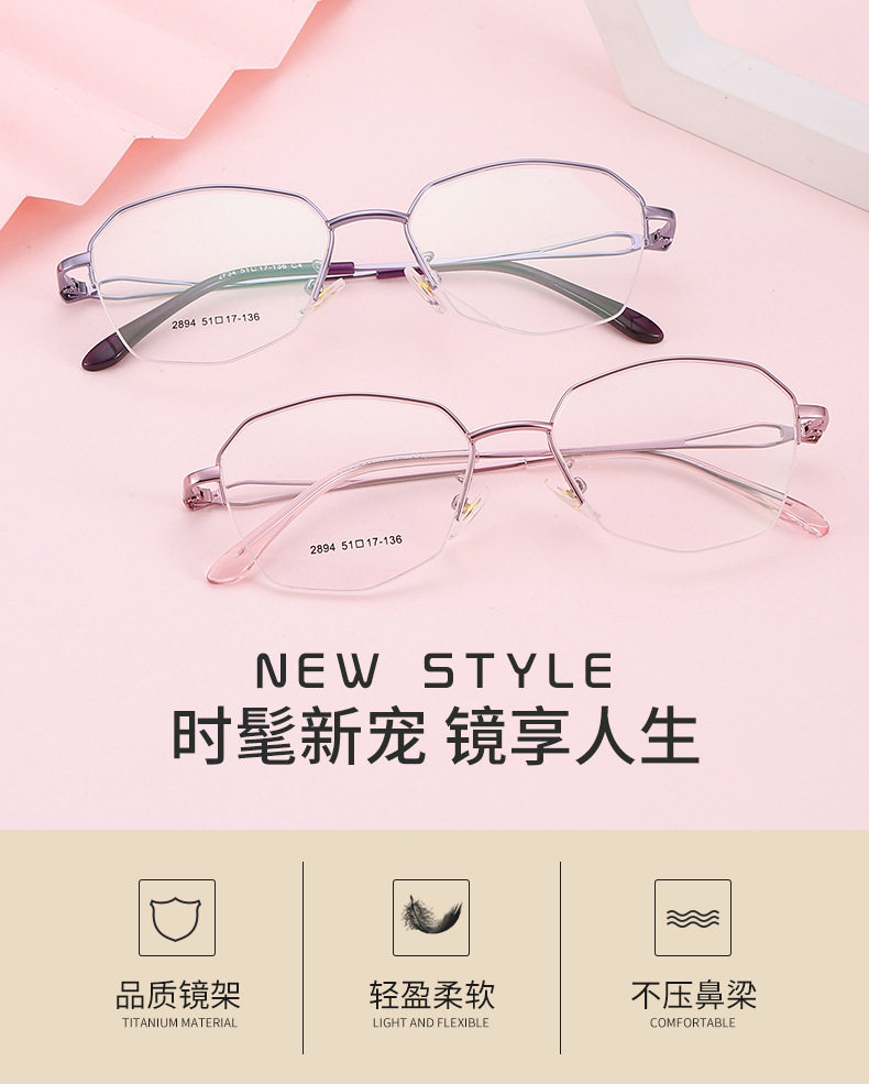 Women's Metal Half-Frame Polygonal Eyeglass Frames, Versatile Plain Style, Wholesale Danyang Eyeglasses for Nearsightedness