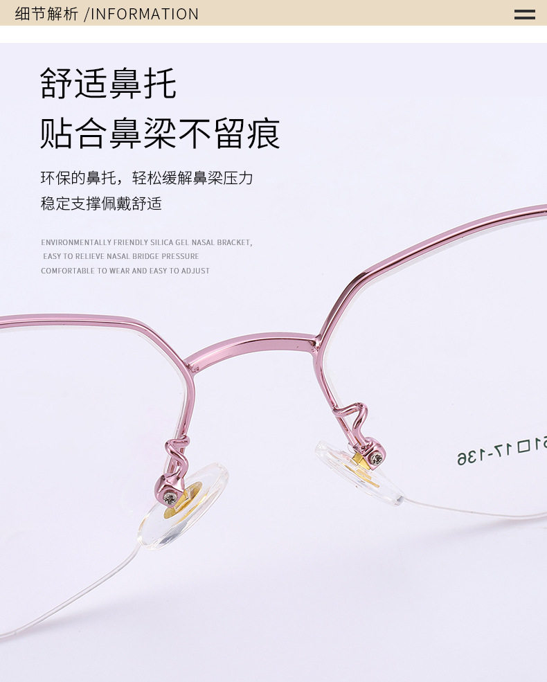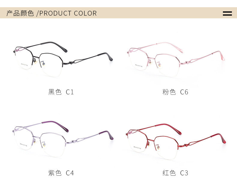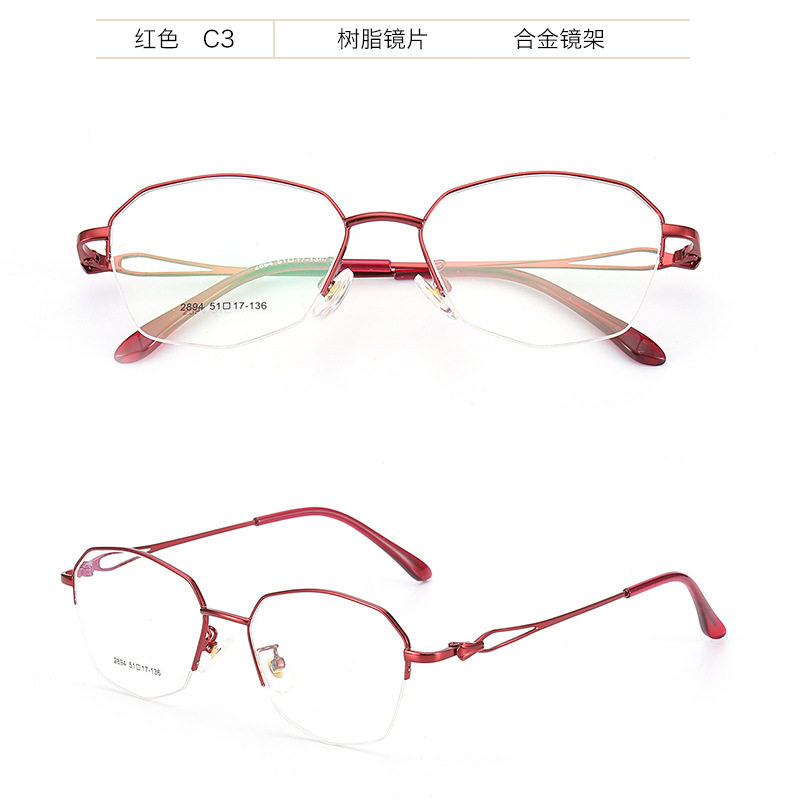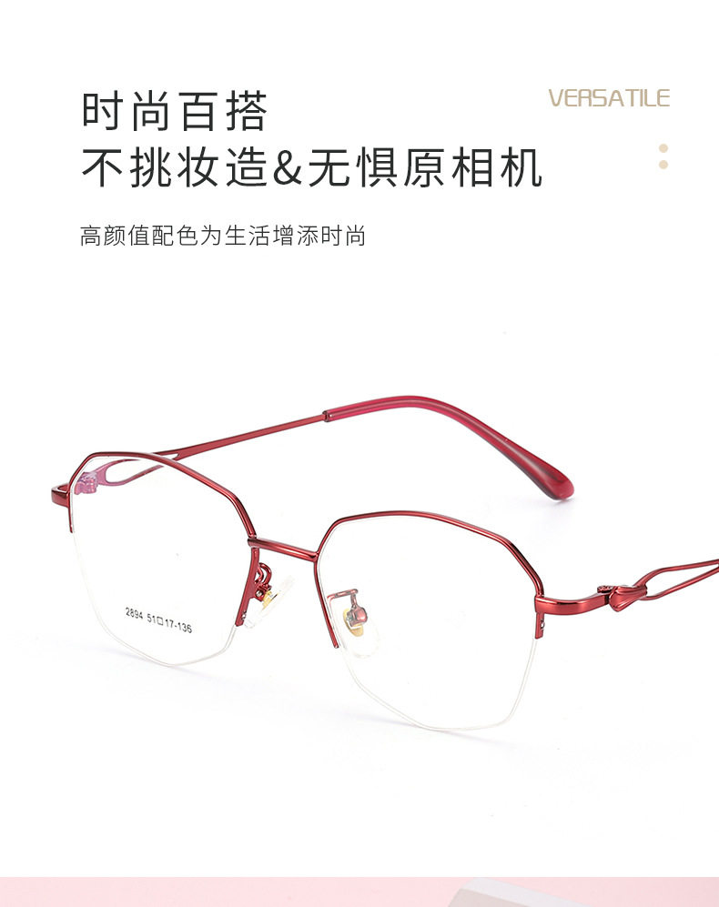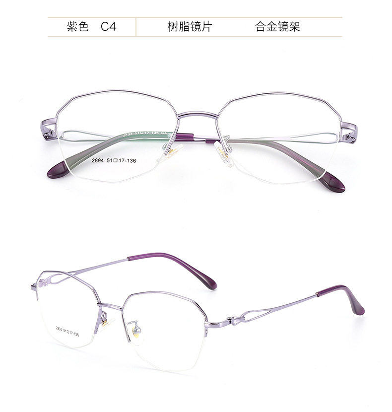 Women's Metal Half-Frame Polygonal Eyeglass Frames, Versatile Plain Style, Wholesale Danyang Eyeglasses for Nearsightedness
