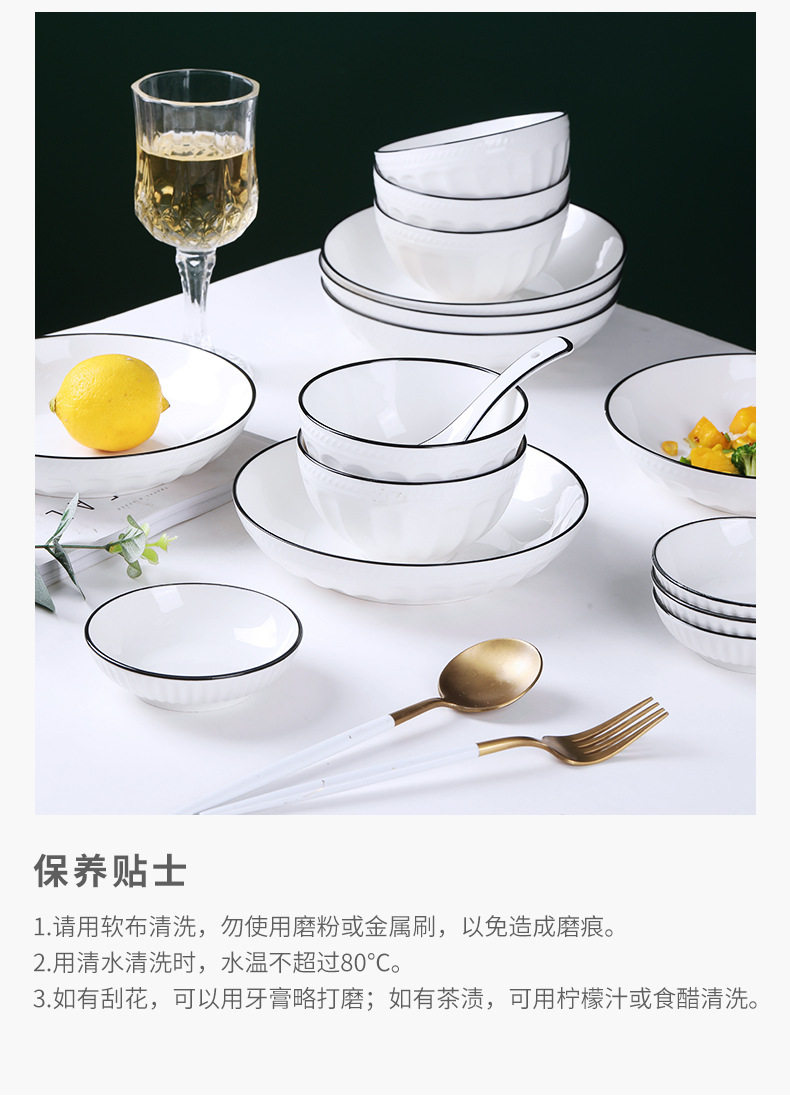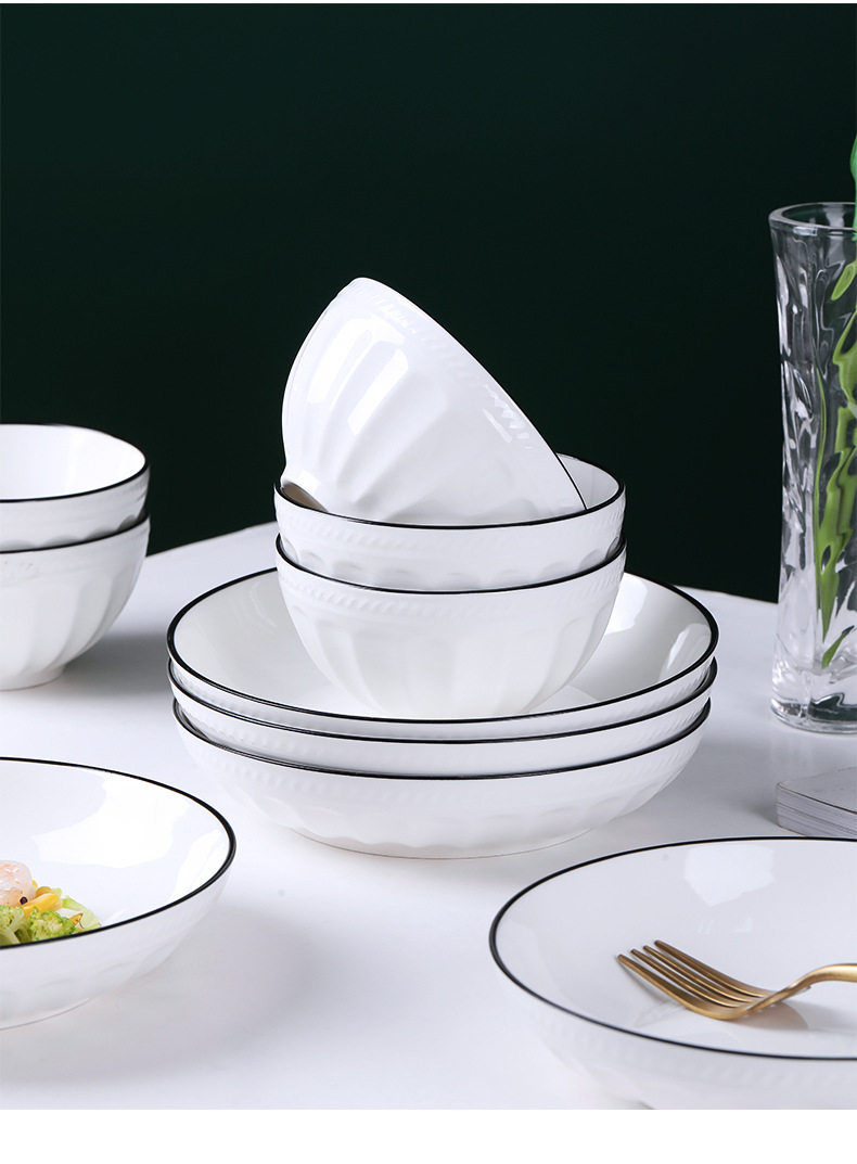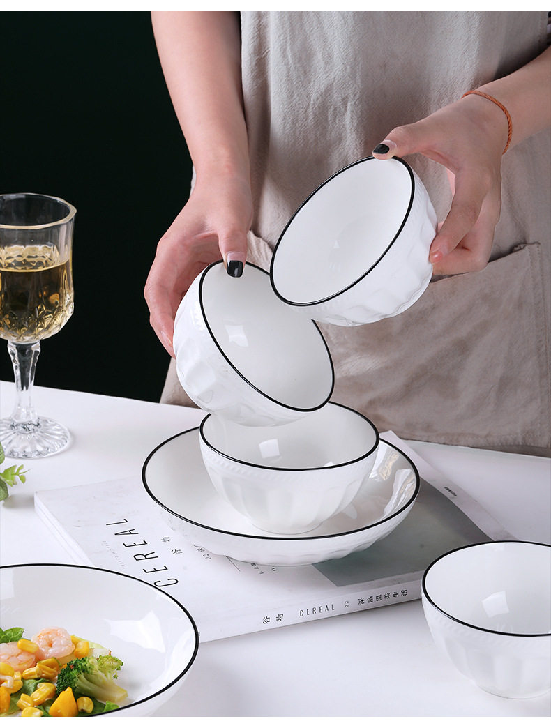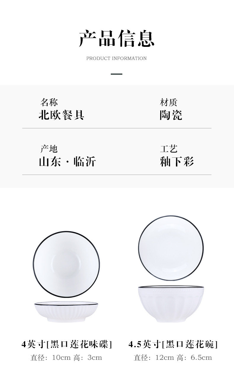 Nordic Style Light Luxury Black Mouth Bead Lotus Bowl and Dish for Home High-value Japanese Style Solid Color Cyber Celebrity Rice Bowl Nian Soup