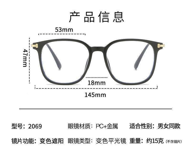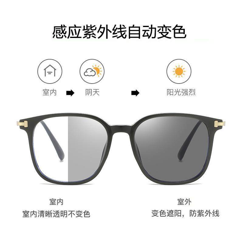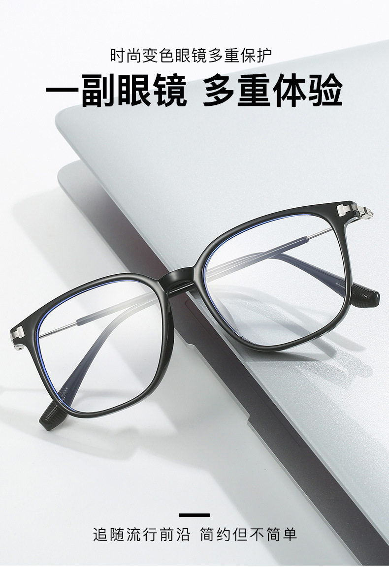 New Fashion Anti-Blue Light Flat Mirror Women's ins Style Personalized Retro Glasses Frame Cold Tea Pigment Color Changing Glasses