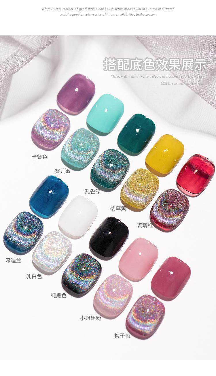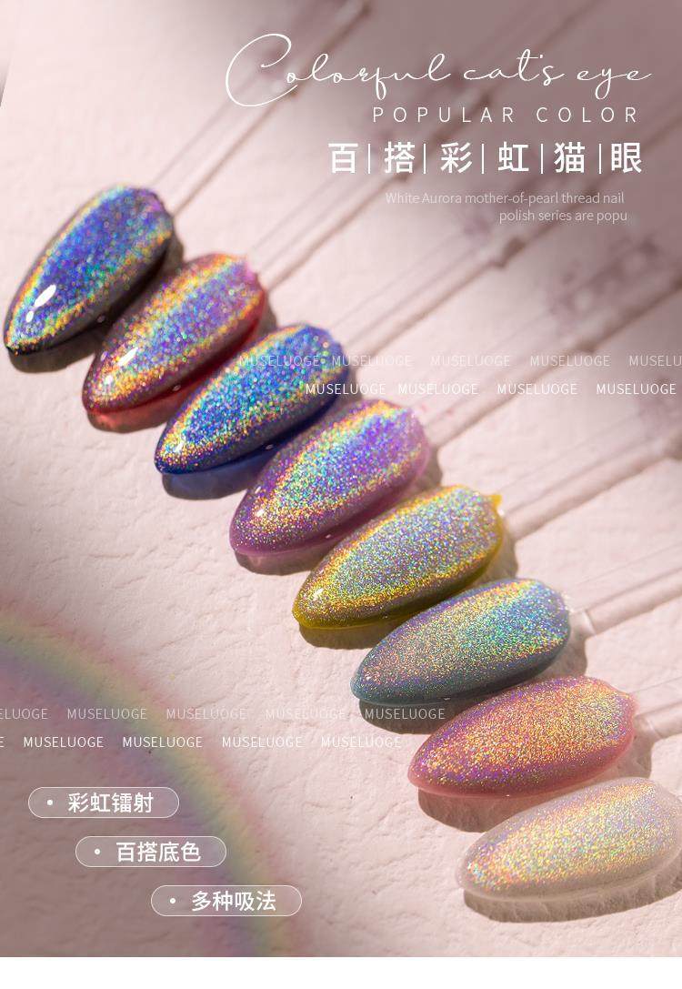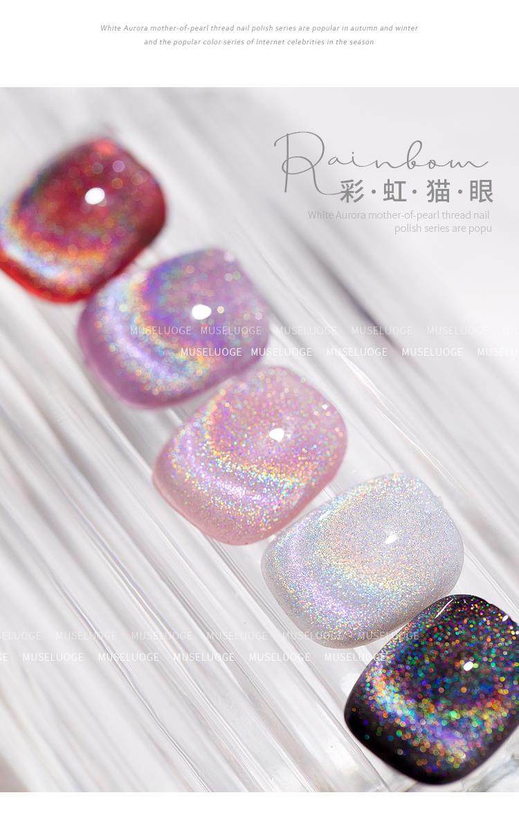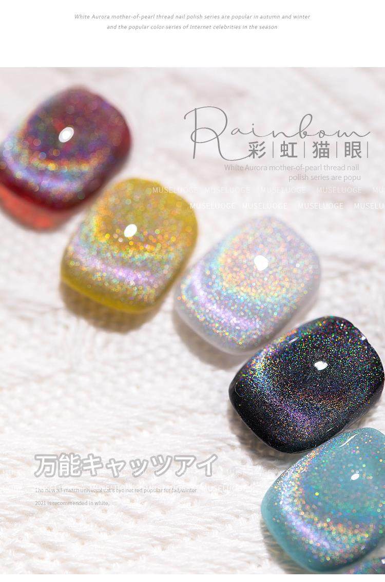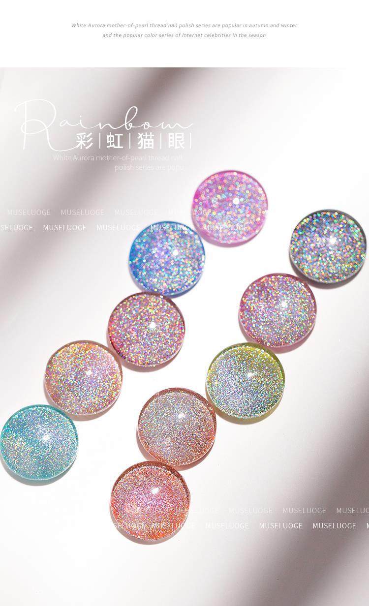 Twilight Rogge 2024 New All-match Rainbow Cat's Eye Nail Polish Glue Colorful Laser Colorful Crystal Cat's Eye