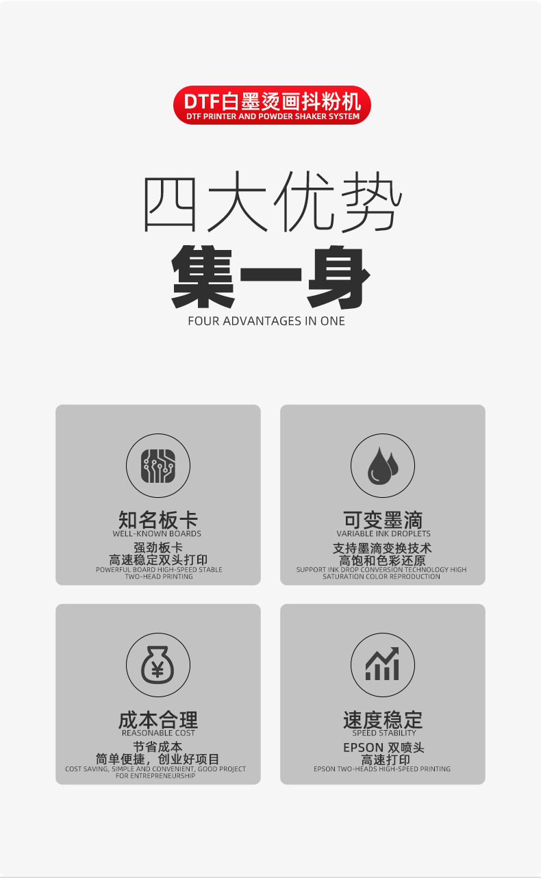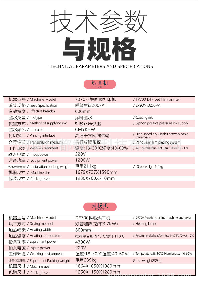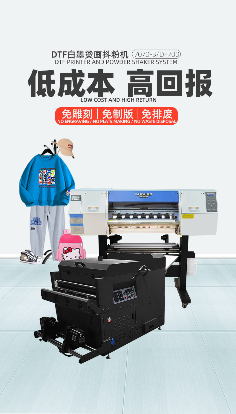 White ink hot stamping printer powder shaking machine double head clothing vest T-shirt DTF digital drying all-in-one printing machine