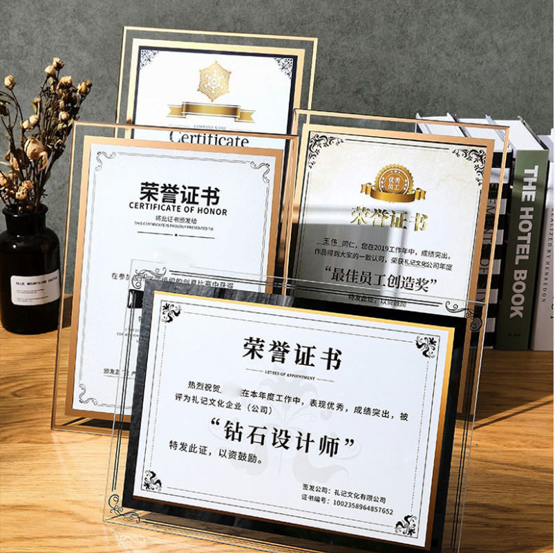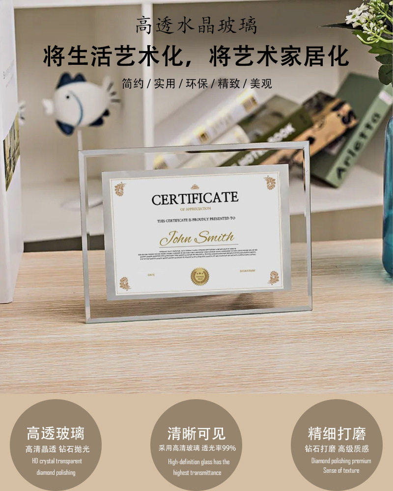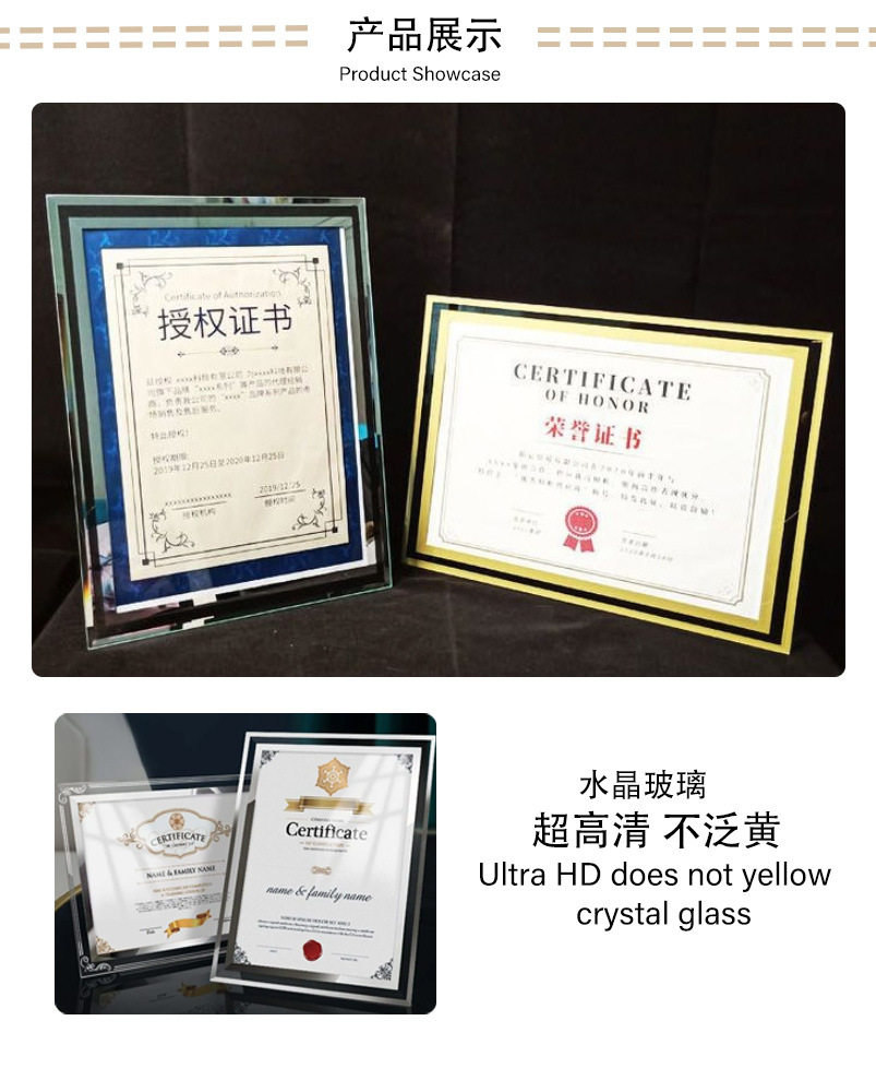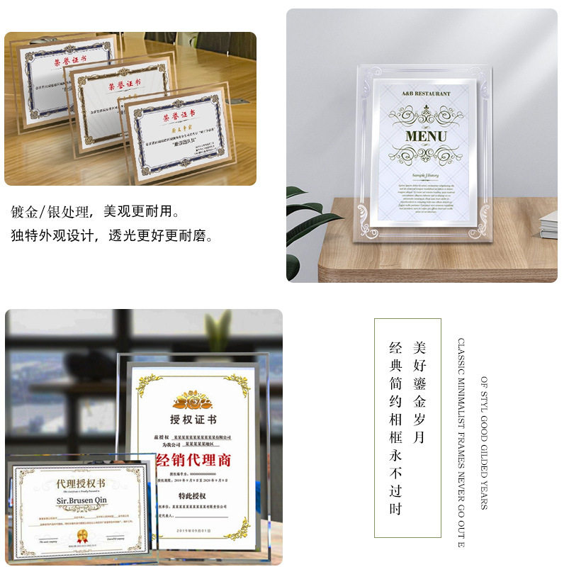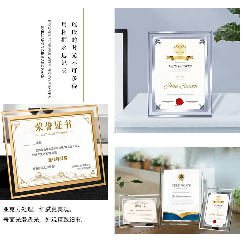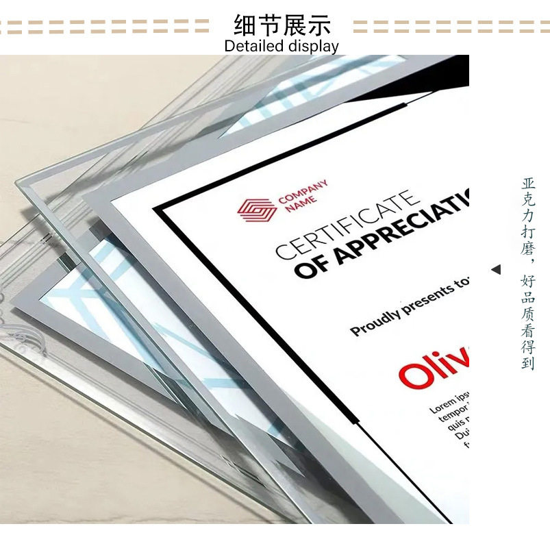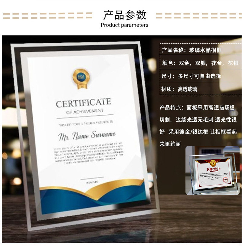 Glass photo frame table certificate of honor certificate mounted painting frame creative crystal table large size wholesale A4