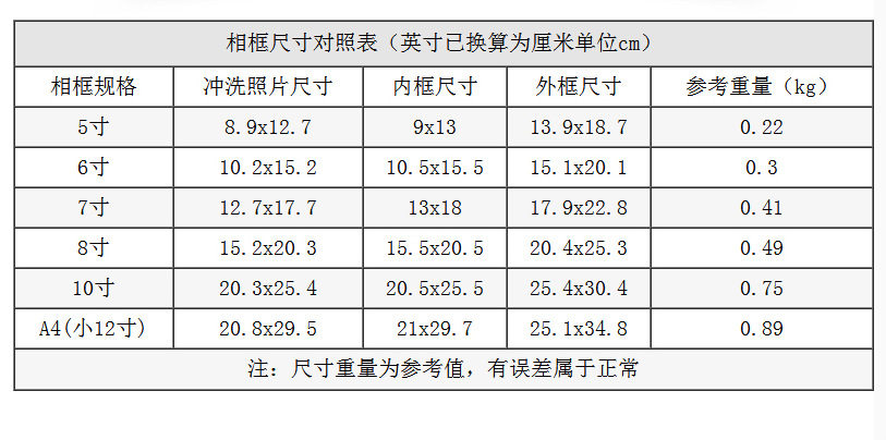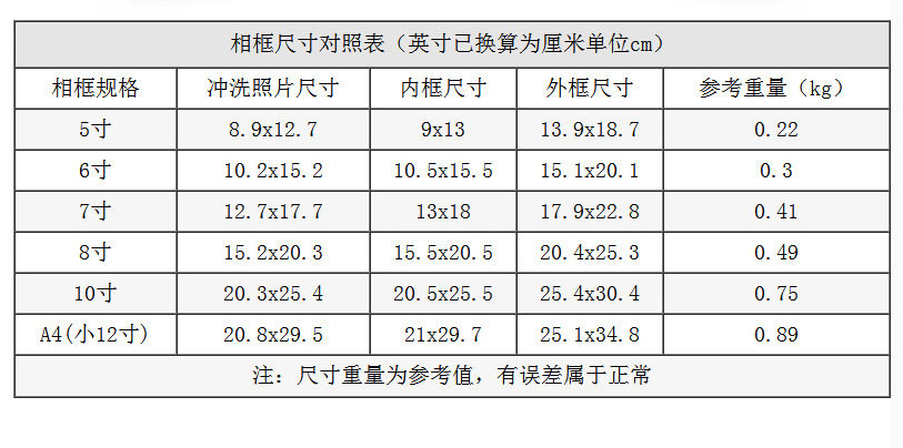 | Frame size | 5 inch (9*13cm),6 inch (10.5*15.5cm),7 inch (13*18cm),8 inch (15.5*20.5cm),10 inch (20.5*25.5cm),A4(21*29.7cm),A5(14.8*21cm) |