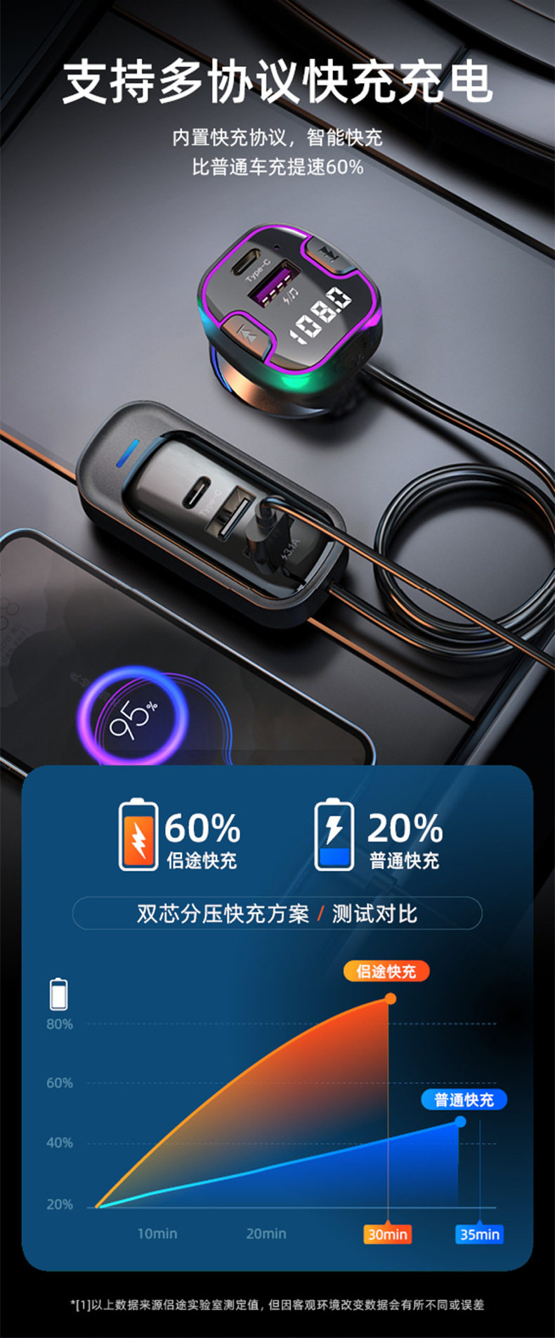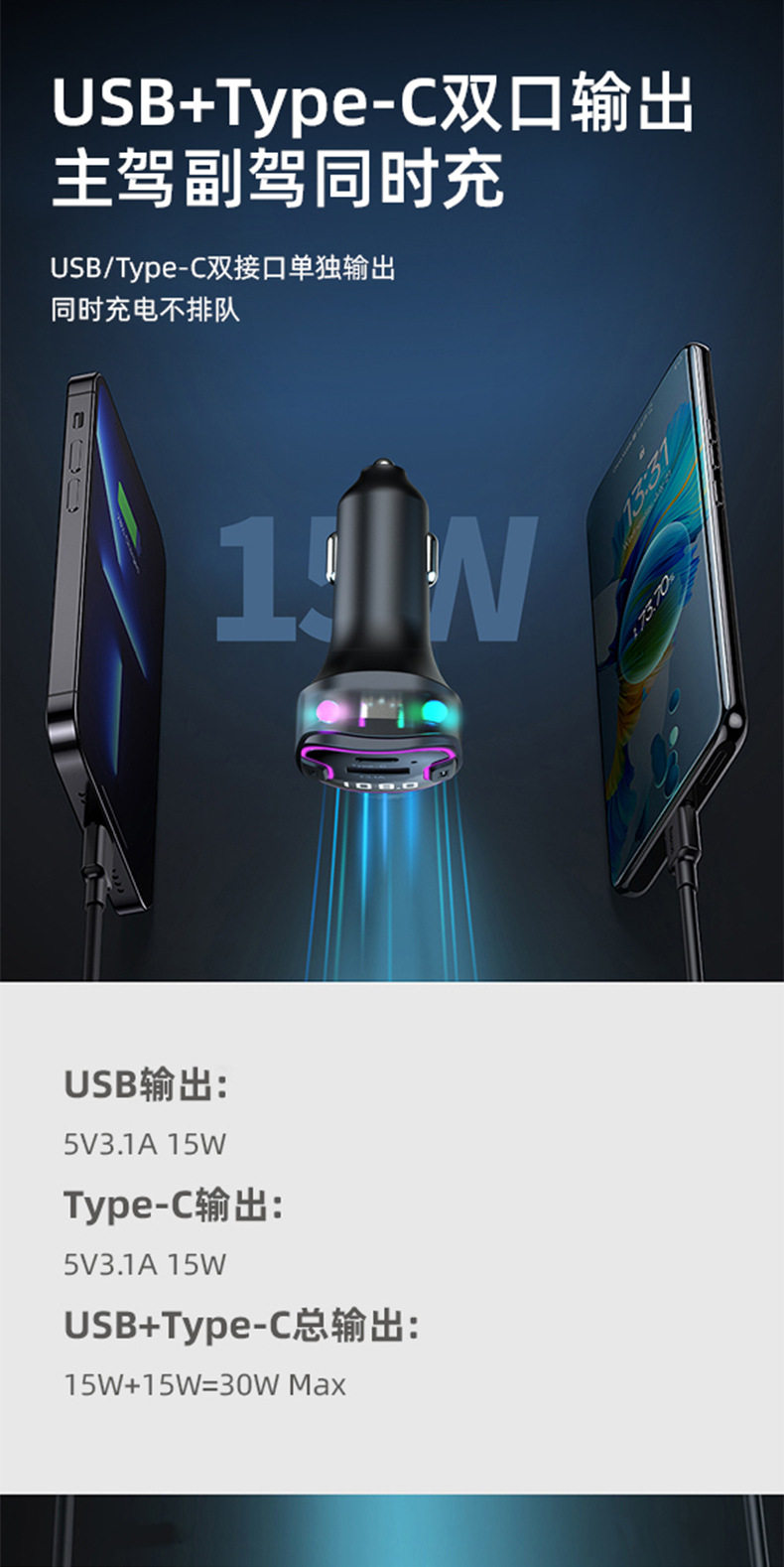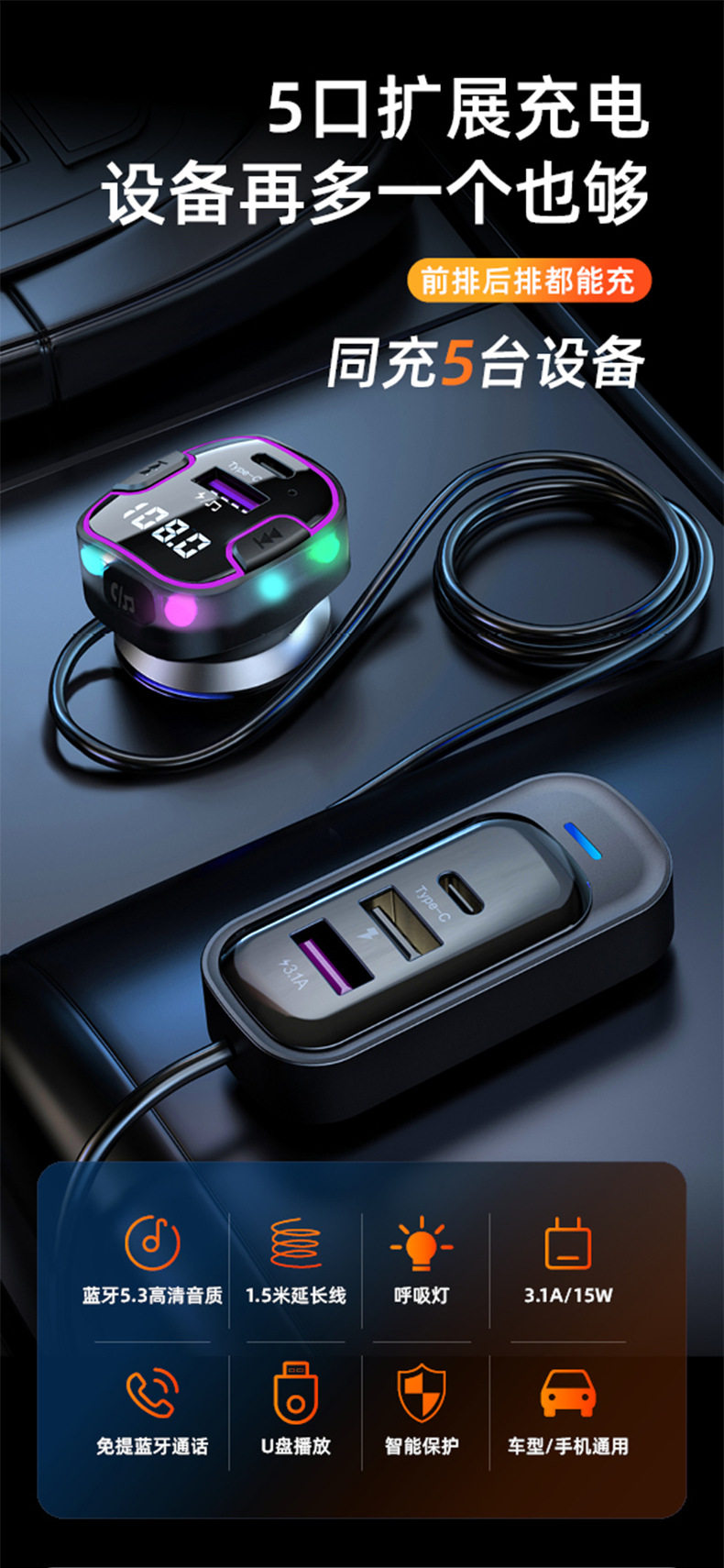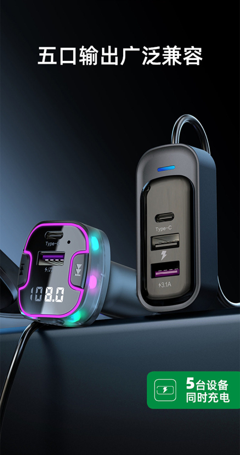 Cross-Border Multi-Port Car Charger Car Mp3 Bluetooth Player Audio Transmitter Car Rear Car Charger