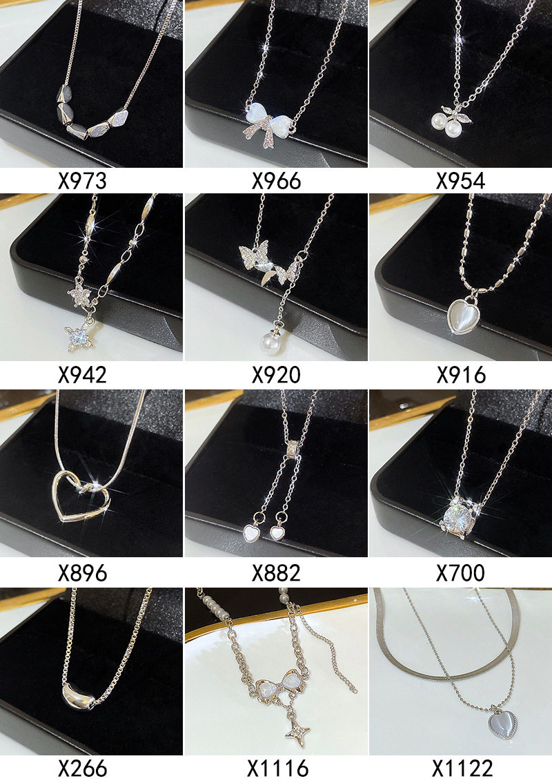 South Korea silver titanium steel necklace for girls versatile high sense niche Pearl butterfly pendant clavicle chain jewelry wholesale