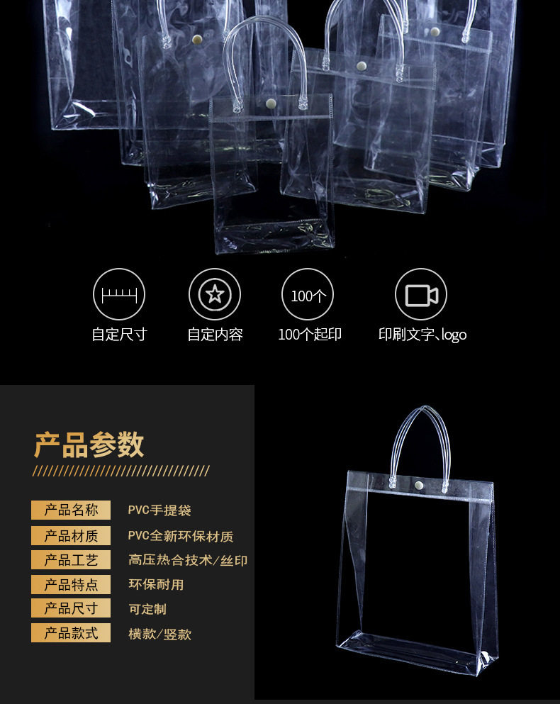 Plastic Transparent Pvc Handbag Custom Plastic Gift Bag Cosmetic Packaging Bag Popular Hand Bag Customization