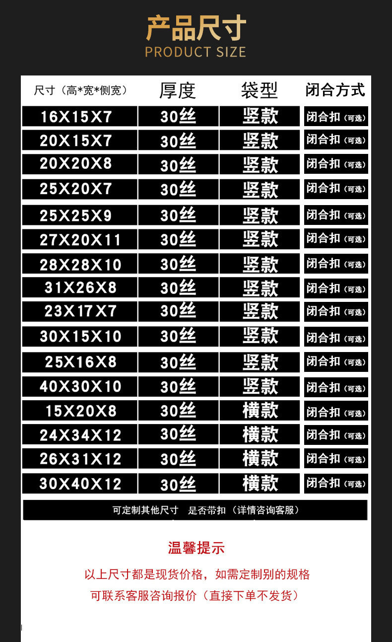 | Specifications and models | Transparent; 15*16*7 vertical style; 7*2,Transparent; 20*20*8 square style; 7*2,Transparent; 25*20*7 vertical style; 7*2,Transparent; 25*25*9 square style; 7*2,Transparent; 20*28*10 vertical style; 7*2,Transparent; 20*16*8 horizontal style; 7*2,Transparent; 31*26*8 vertical style; 7*2,Transparent; 26*31*10 horizontal style; 7*2,Transparent; 34*24*12 horizontal style; 7*2,Transparent; 30*40*10 vertical style; 7*2,Transparent; 40*30*12 horizontal style; 7*2,Transparent; 23*17*8 vertical style; 7*2,Transparent; 15*30*10 vertical style; 7*2,Transparent; 28*28*10 square style; 7*2,Transparent; 26*21*8 vertical style; 7*2,Transparent; 31*26*10 vertical style; 7*2,Transparent; 25*20*10 horizontal style; 7*2,Transparent; 20*27*11 vertical style; 7*2,Transparent; 20*15*8 horizontal style; 7*2,Transparent; 25*10*10 vertical style; 7*2,Transparent; 20*10*10 vertical style; 7*2,Transparent; 20*20*8 horizontal style; 7*2,Transparent; 16*13*7 vertical style; 7*2,Transparent; 20*15*7 vertical style; 7*2,Transparent; 23*17*7 vertical style; 7*2,Transparent; 25*16*8 vertical style; 7*2,Transparent; 30*20*10 vertical style; 7*2,Transparent; 34*24*12 vertical style; 7*2,Transparent; 35*30*12 vertical style; 7*2,Transparent; 31*26*12 vertical style; 7*2,Transparent; 30*35*12 horizontal style; 7*2,Transparent; 25*15*8 vertical style; 7*2,Transparent; 30*25*8 vertical style; 7*2,Transparent; 26*31*12 horizontal style; 7*2 |