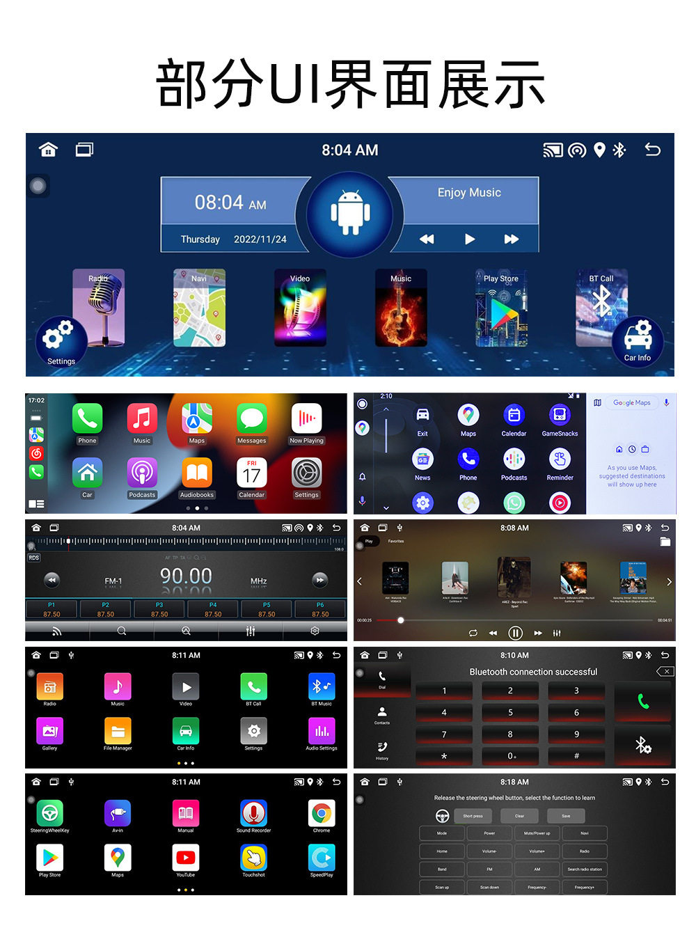 | Specifications | 1+32G (standard ASP + Wireless carplay),2+32G (standard ASP + Wireless carplay) |