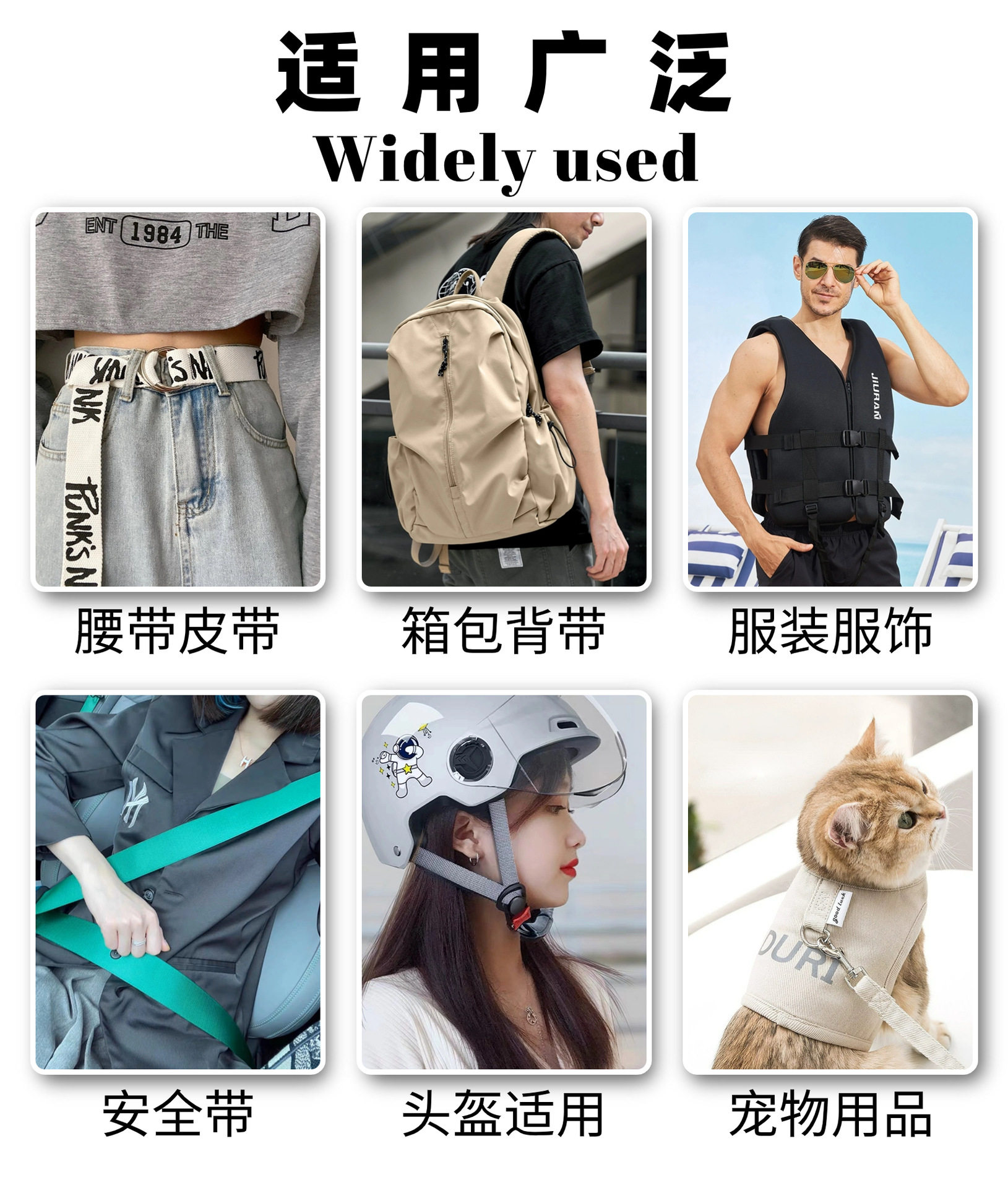 | Scope of application | Shoes,protective gear,Packaging,Skiing,Home Furnishing,Backpack,Bags,Home Textiles,Sofa cushion,Clothing,Medical Supplies,cord management belt,car seat,Bundle,Sphygmomanometer arm belt,Industrial use,Waist Protectors,Suspended magnetic moxibustion strap |