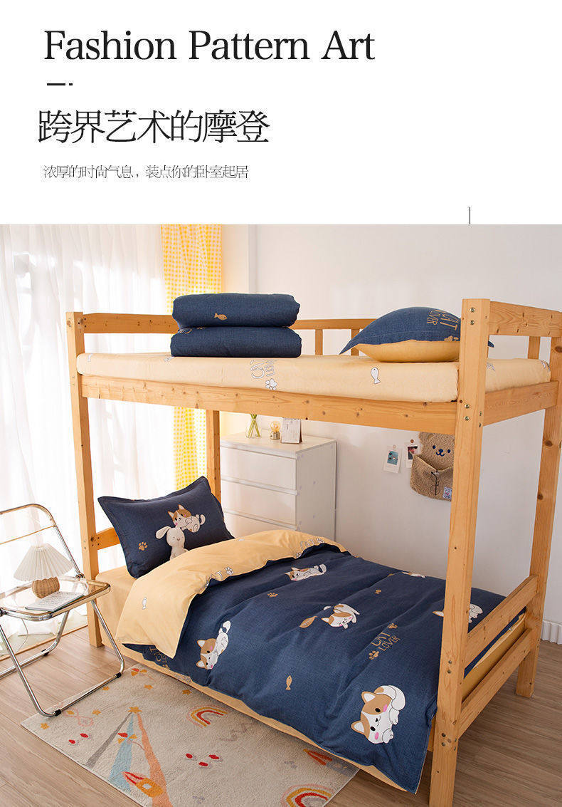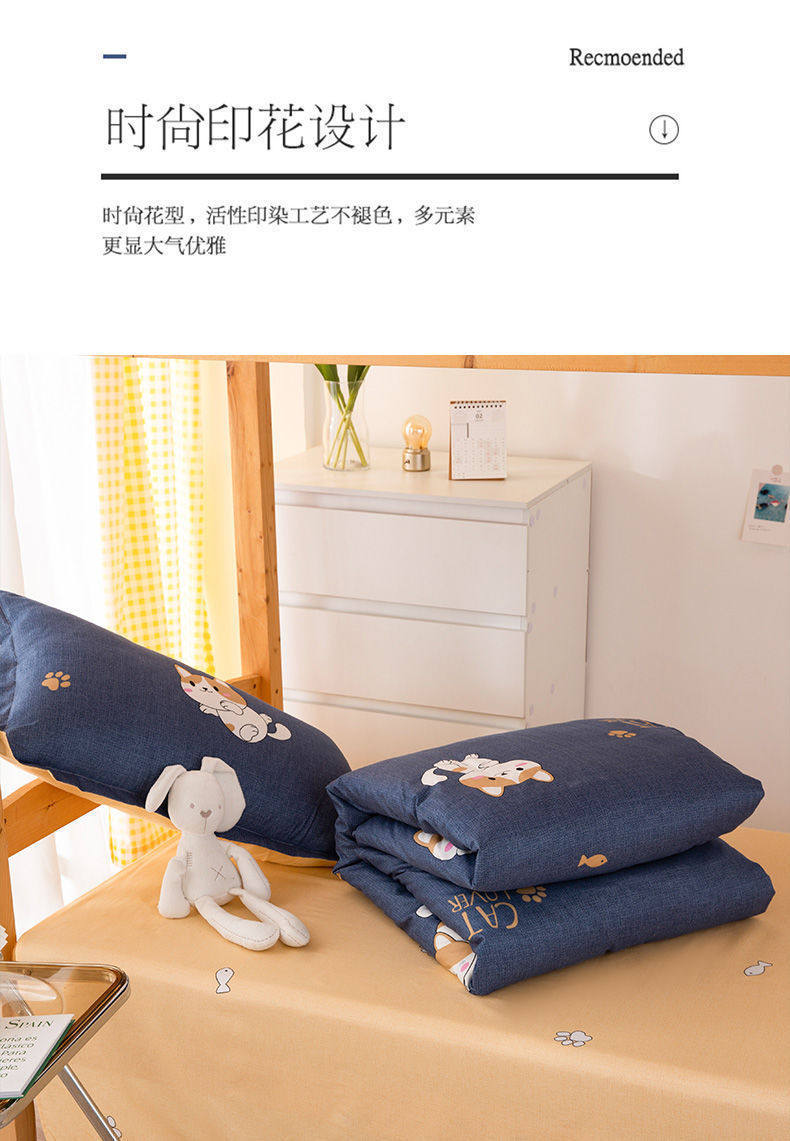 | Dimensions | Dormitory bed three-piece set (bed sheet, quilt cover, pillowcase),Dormitory bed four-piece set (three-piece set 1 pillow),Dormitory bed set of five (1 summer pillow),Dormitory bed five-piece set (1.50kg quilt pillow),Dormitory bed five-piece set (2.00kg quilt pillow),Dormitory bed five-piece set (2.50kg quilt pillow),Dormitory bed five-piece set (3.00kg quilt core pillow core),0.9 bed six-piece set (summer pillow core mattress),0.9 bed six-piece set (1.50kg pillow core mattress),0.9 bed six-piece set (2.00kg pillow core mattress),0.9 bed six-piece set (2.50kg pillow core mattress),0.9 bed six-piece set (3.00kg pillow core mattress),1.2 bed six-piece set (summer pillow core mattress),1.2 bed six-piece set (1.50kg pillow core mattress),1.2 bed six-piece set (2.00kg pillow core mattress),1.2 bed six-piece set (2.50kg pillow core mattress),1.2 bed six-piece set (3.00kg pillow core mattress) |