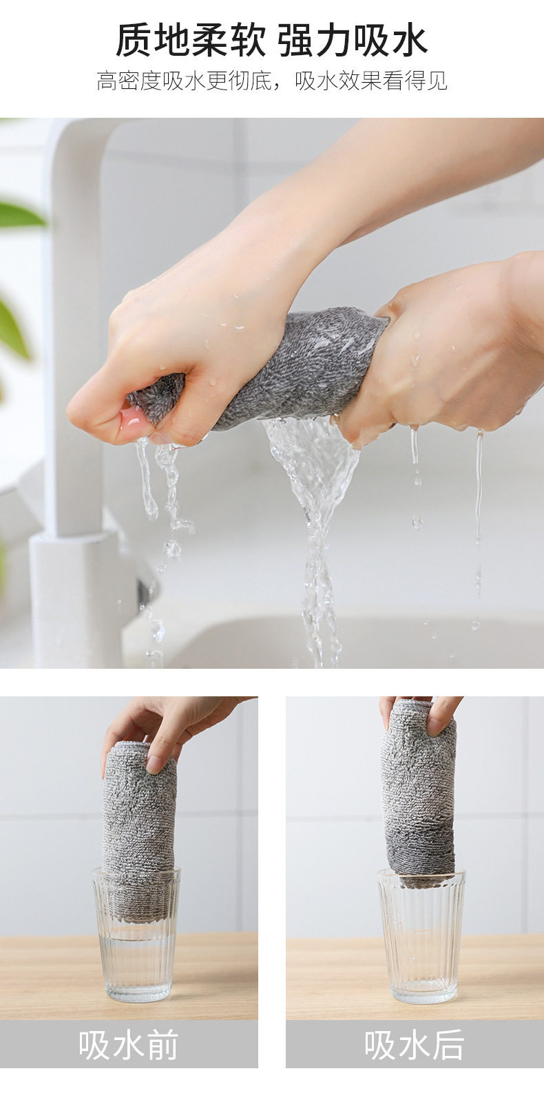 Bamboo Charcoal Fiber Rag Thickeneded Water-Absorbent Non-Stick Oil Towel Multifunctional Soft Kitchen Rag Scouring Pad Cleaning Cloth