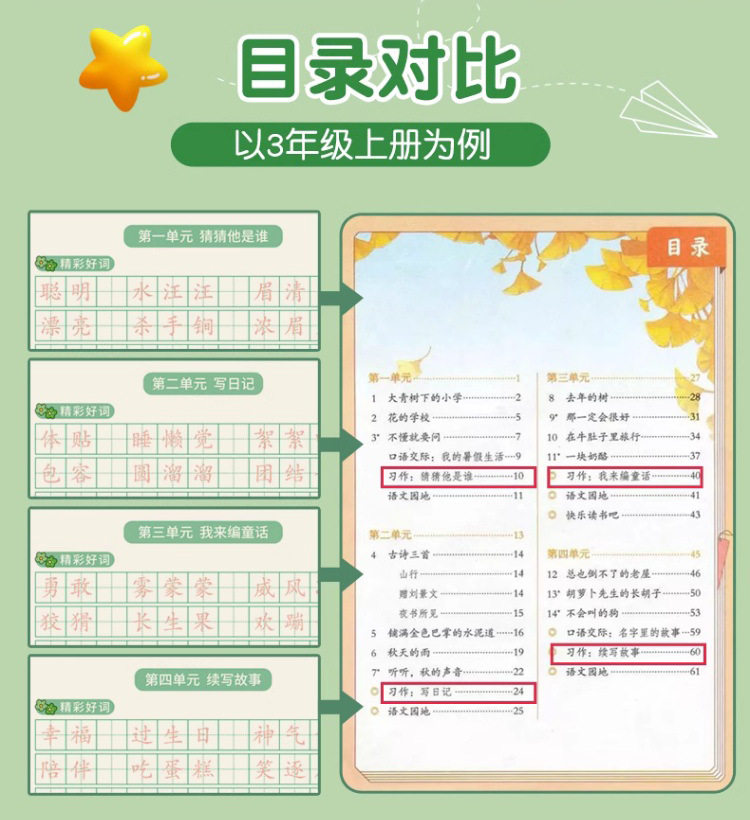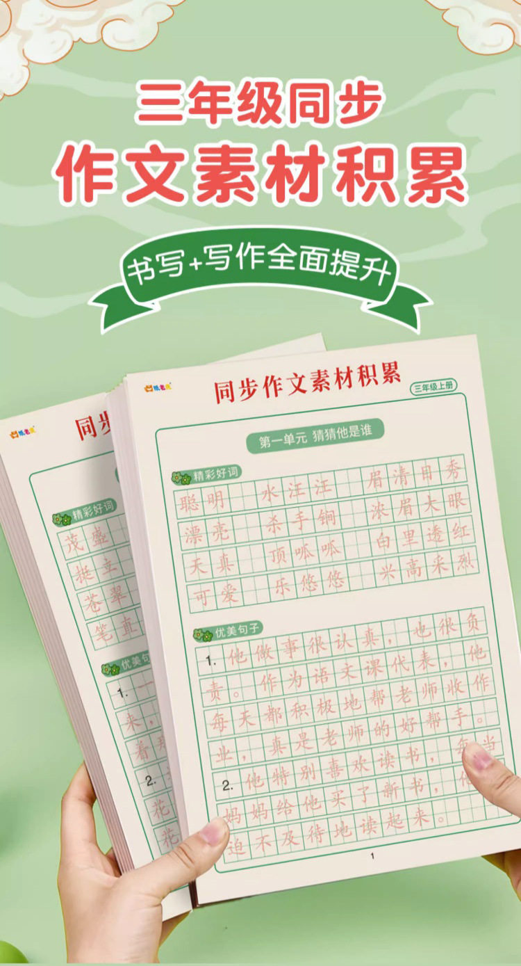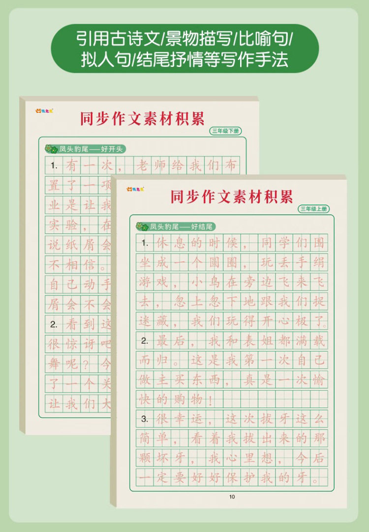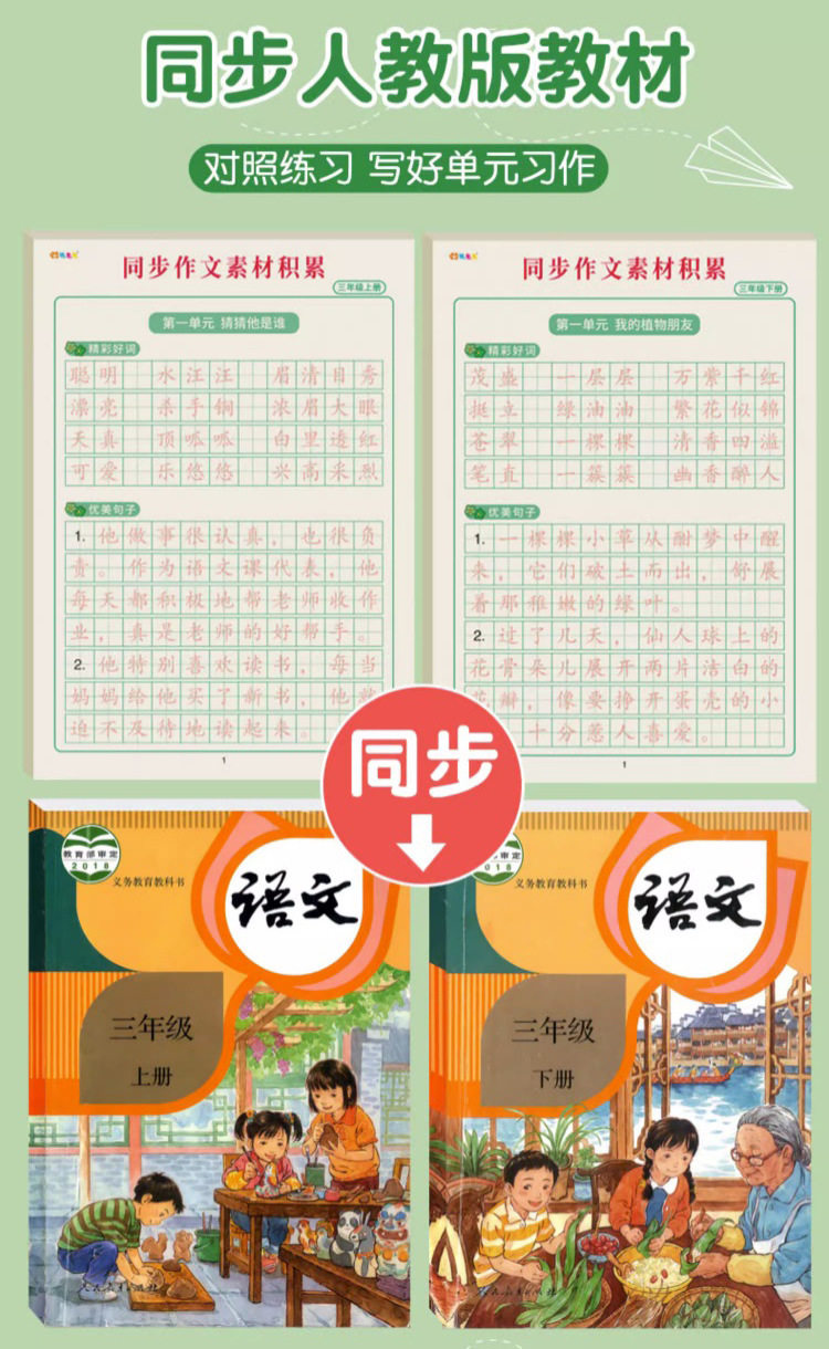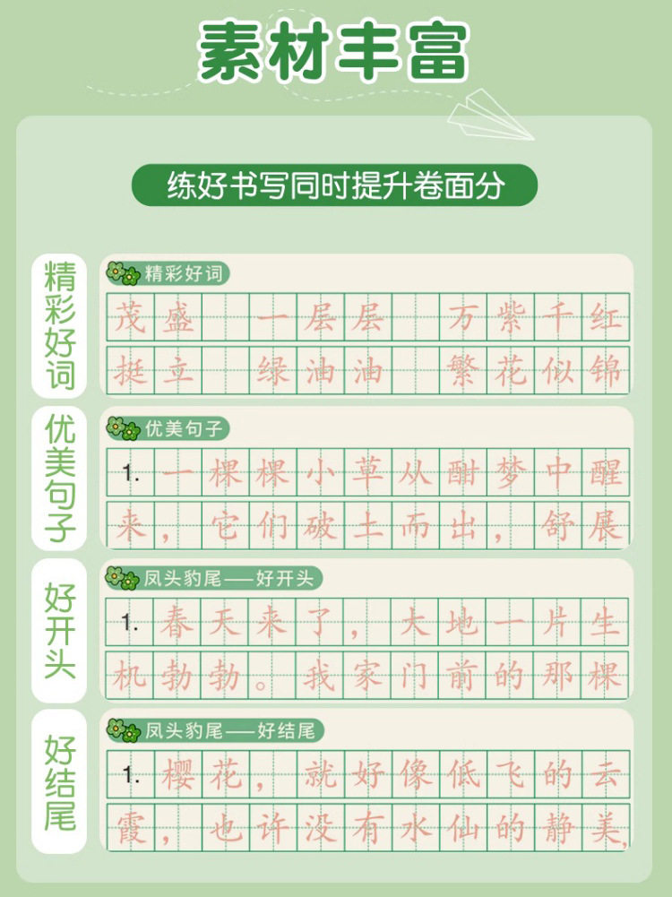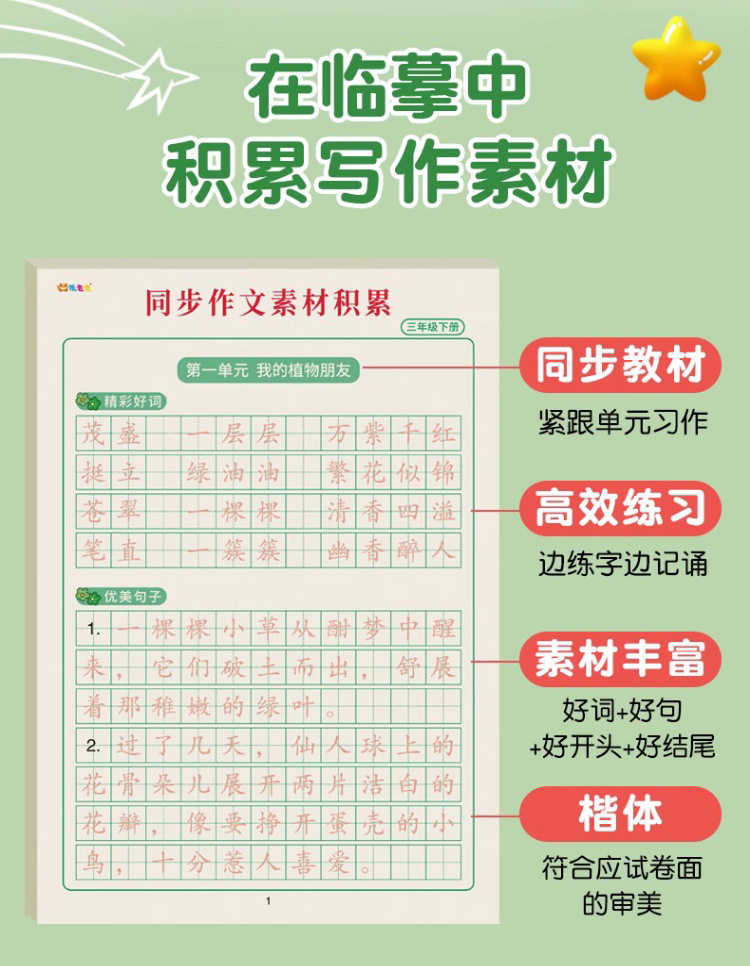 Third grade synchronous composition material accumulation Chinese good words good sentences tracing red book copy hard pen calligraphy practice copybook