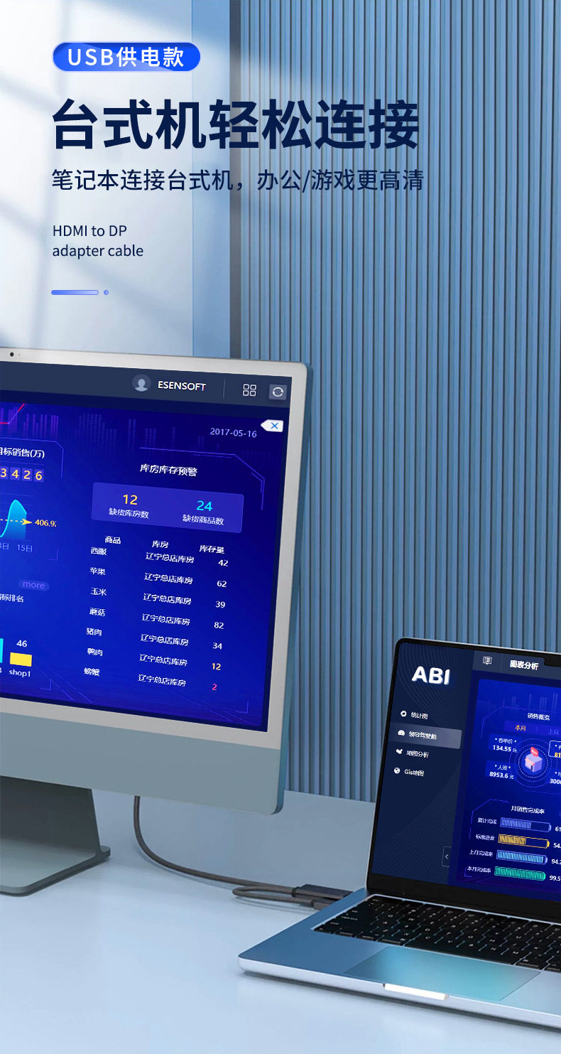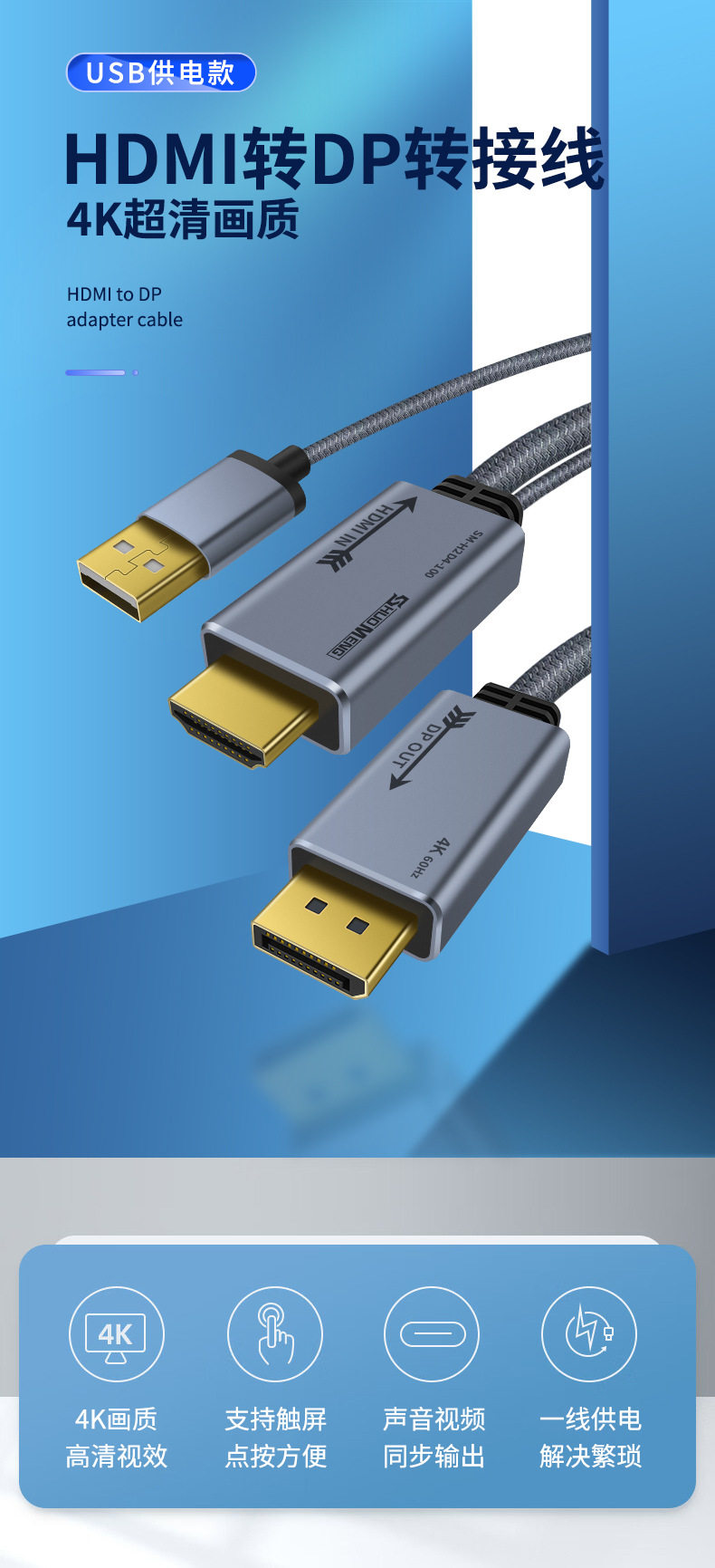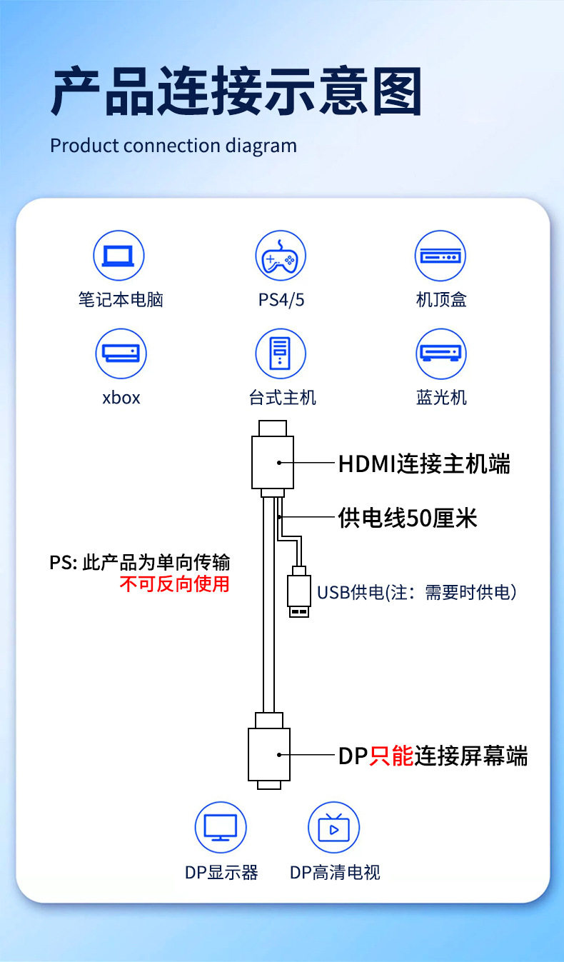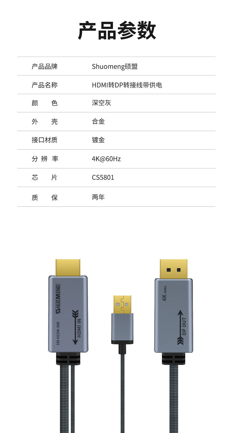 HDMI to DP line 4K60Hz video converter computer connection monitor displayport port CS5801
