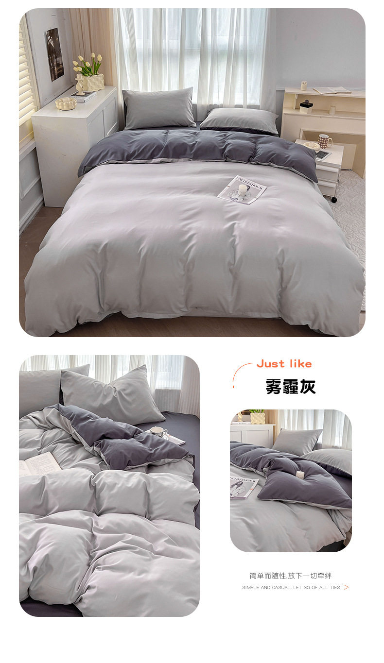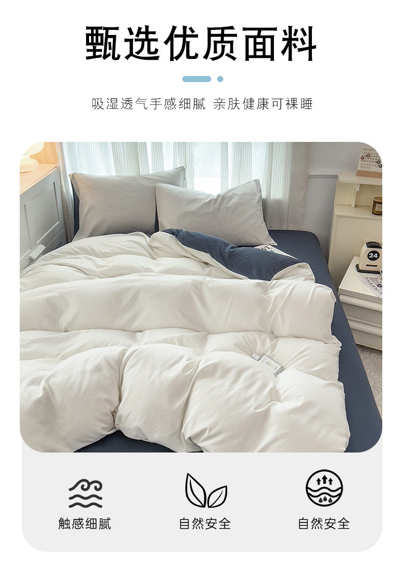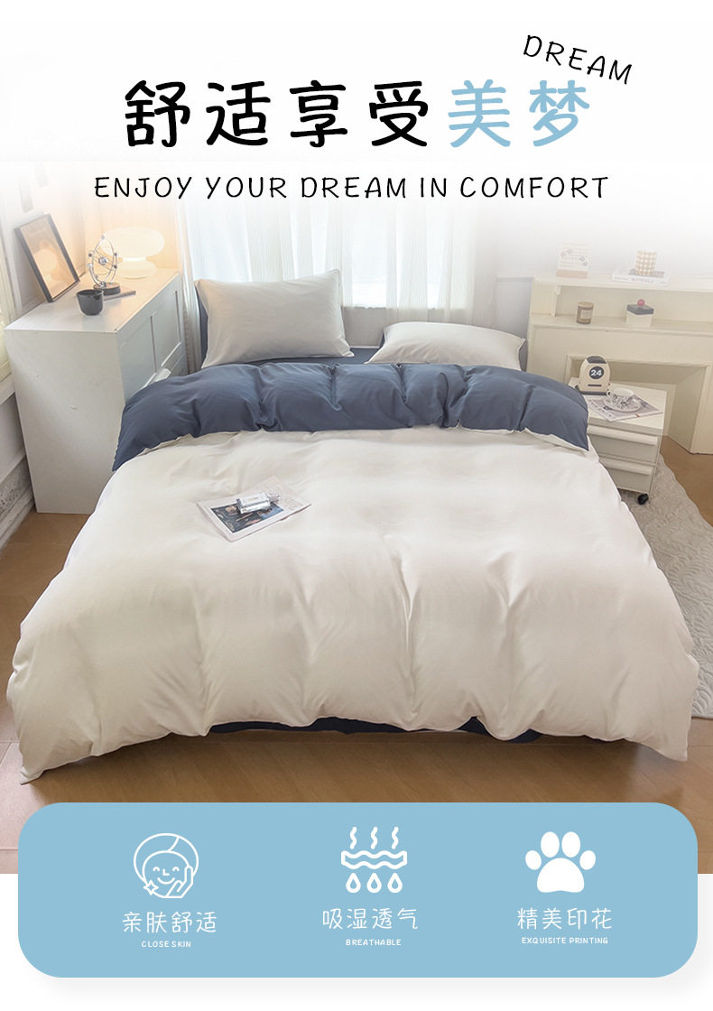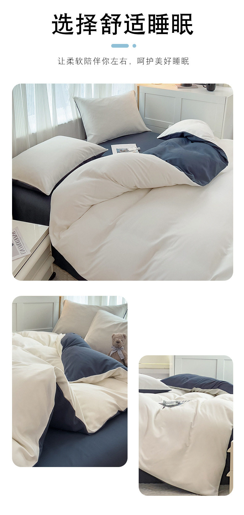 Strict selection of four-piece ins solid color sanding bedding student dormitory bed sheets quilt cover three-piece wholesale spring
