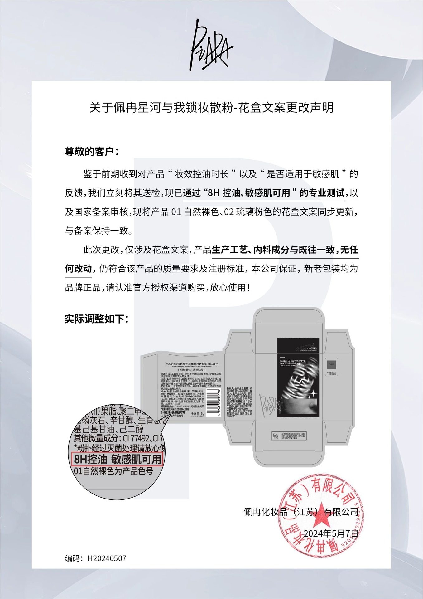 | Production License number | Zhejiang makeup 20190048 |