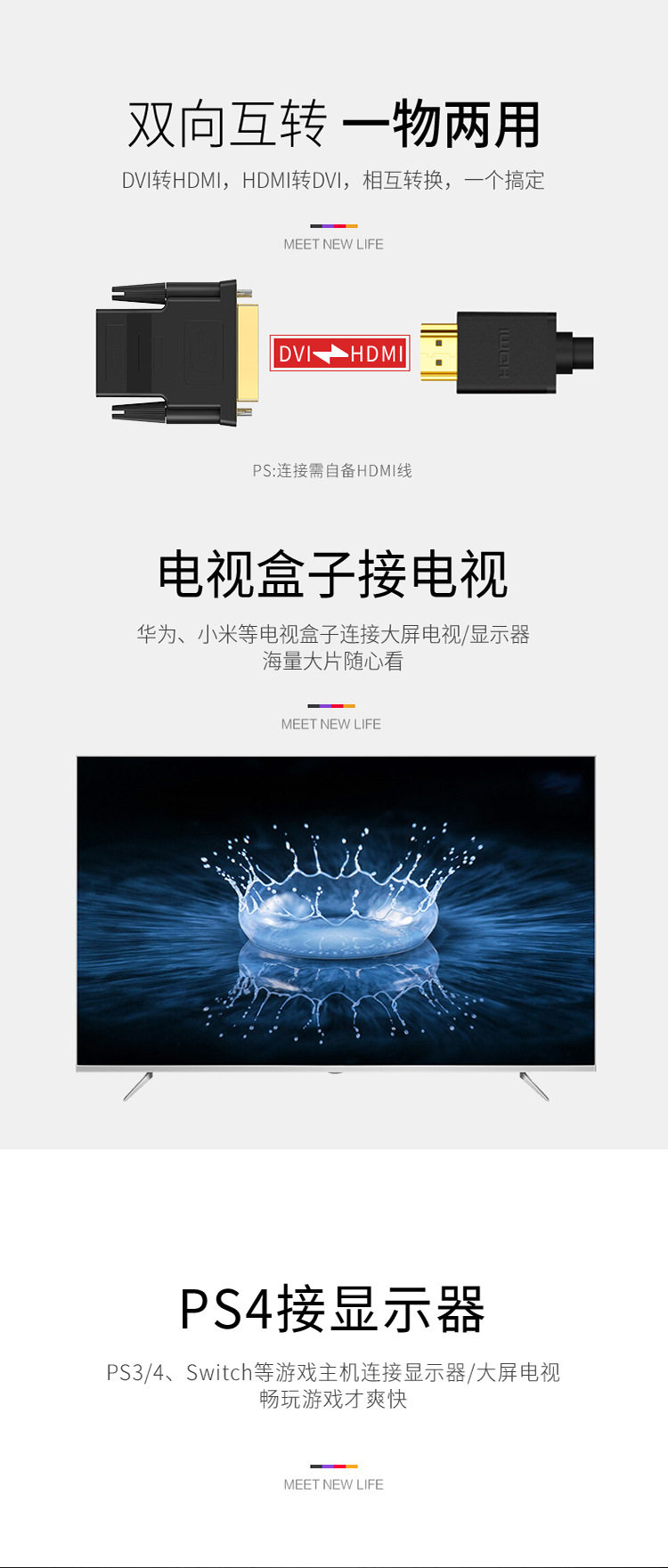 | Color | DVI(24+1) revolution HDMI female (two-wire mutual rotation),DVI(24+5) revolution VGA female adapter,HDMI public rotation mother (support two-way conversion) |