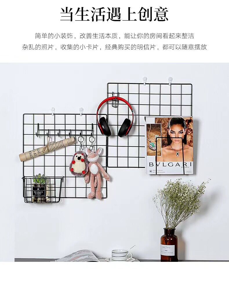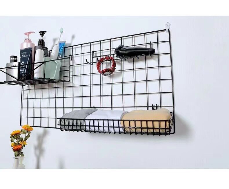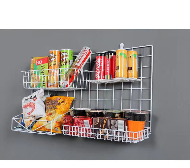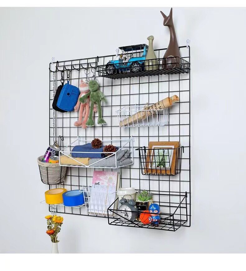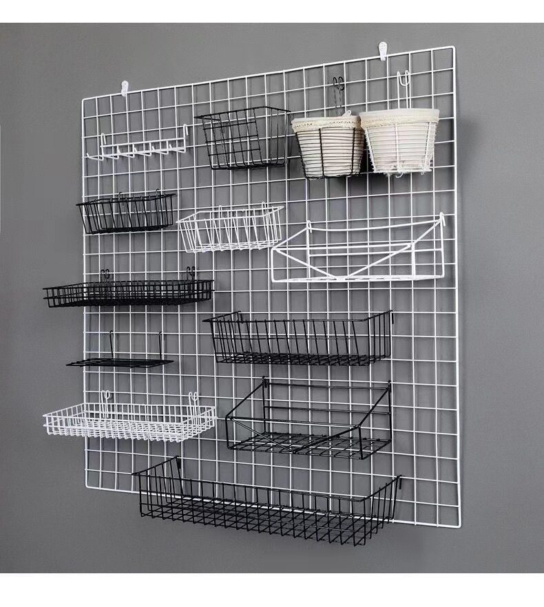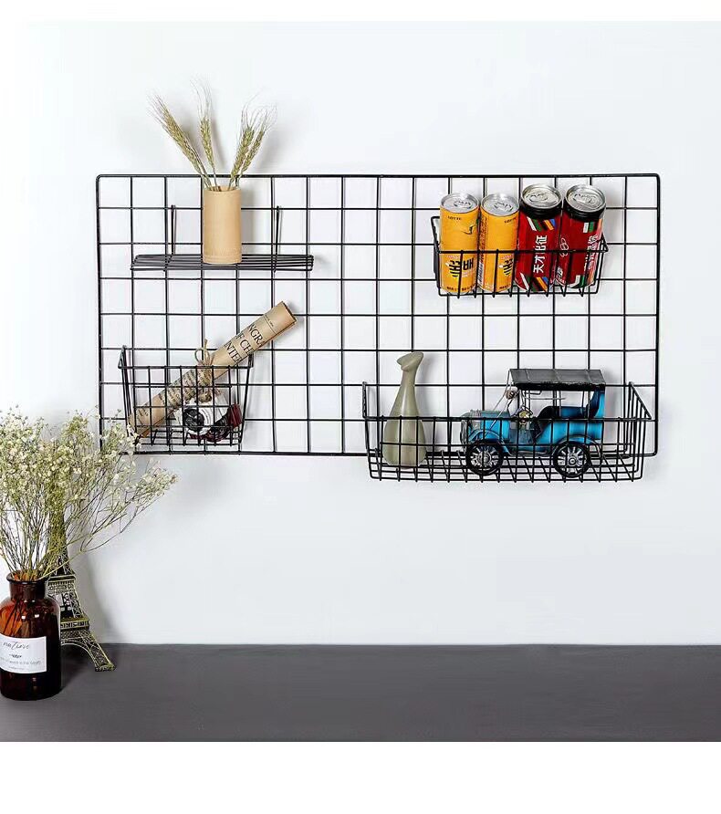 Iron Mesh Grid Storage Rack Hanging Basket Tray Photo Wall Accessories Supermarket Storage Iron Storage Rack Decorative Household