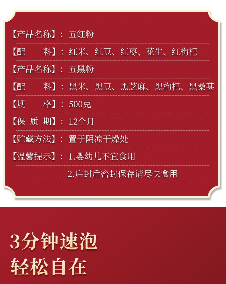 Five red powder and five black powder 500g canned five red soup, red jujube, medlar powder, whole grain meal replacement powder, ready-to-eat