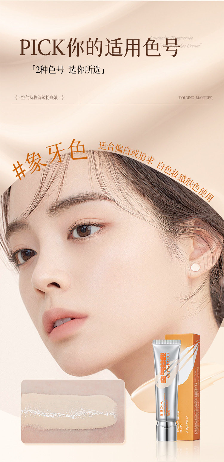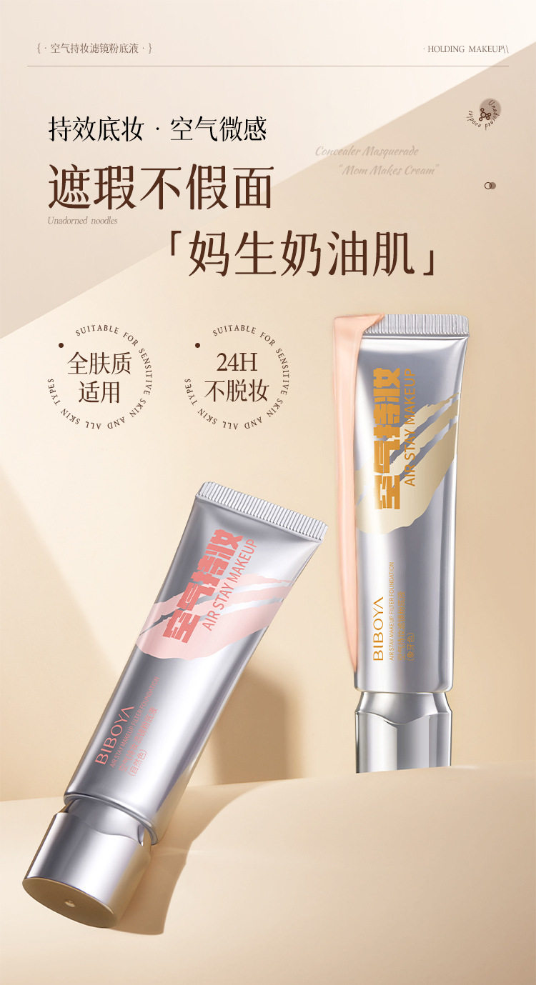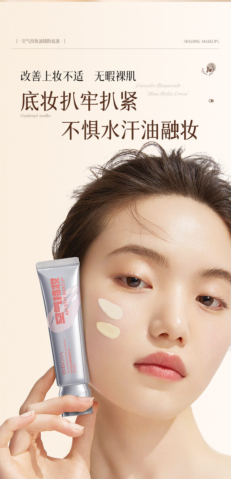 Bibeya Air Long-Lasting Makeup Filter Liquid Foundation Concealer Whitening Long-Lasting Non-Removing Makeup Non-Stuck Creamy Skin Foundation Cream