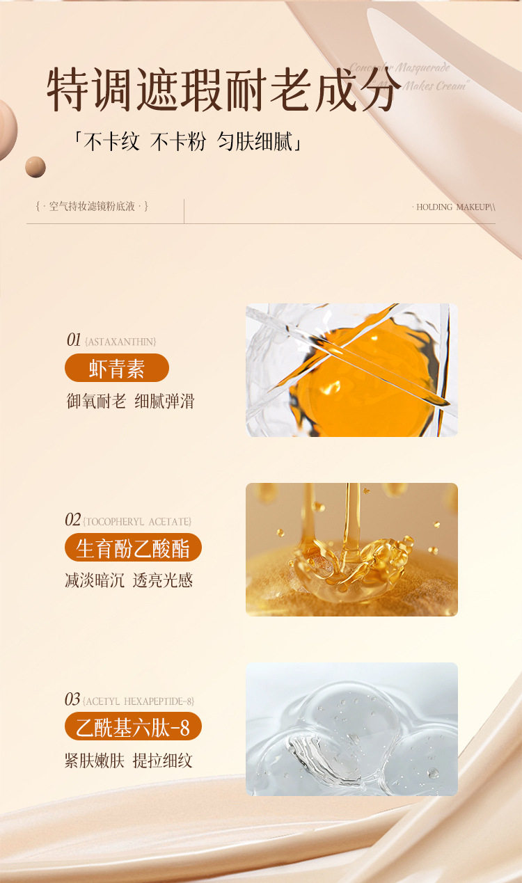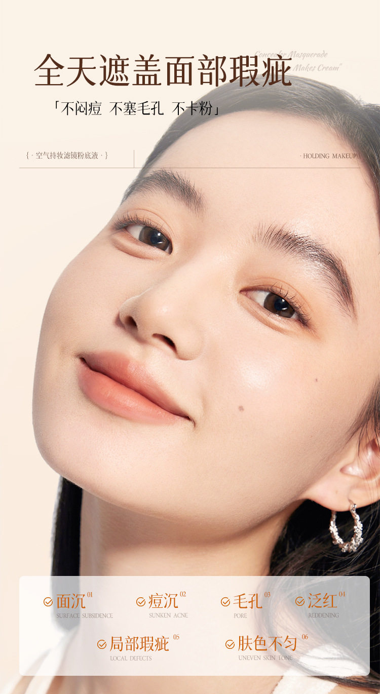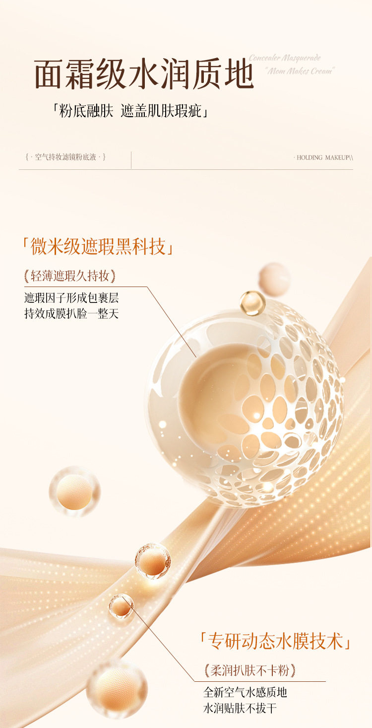 Bibeya Air Long-Lasting Makeup Filter Liquid Foundation Concealer Whitening Long-Lasting Non-Removing Makeup Non-Stuck Creamy Skin Foundation Cream